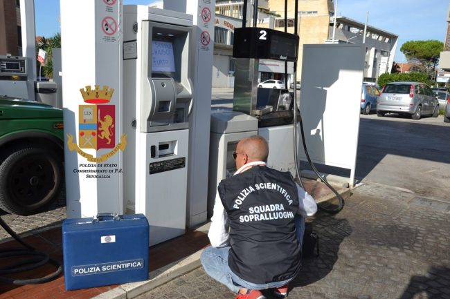 Furto al distributore di benzina: ladro in fuga. Il bandito è stato sorpreso attorno alle 3 mentre, incappucciato, armeggiava con una colonnina self della stazione di servizio di via Sanzio. L’uomo, accortosi delle presenza dell’auto della polizia, immediatamente si è allontanato verso l’area retrostante. I poliziotti intimavano l’alt ma l’uomo ha proseguito nella sua repentina fuga. Gli agenti si mettevano all’inseguimento ma il soggetto, aiutato dall’assenza di illuminazione, attraversava diverse abitazioni e si portava verso i binari della ferrovia dove faceva perdere le proprie  tracce. Gli agenti avviavano le ricerche al momento senza esito. Al contempo i poliziotti effettuavano i rilievi del caso per verificare quanto accaduto accertando che l’uomo, prima del loro arrivo, con l’utilizzo di strumenti, aveva scardinato una parte della colonnina per forzare la cassa e prelevarne il contenuto. Il bottino è da quantificare. Questa mattina, il sopralluogo della Polizia Scientifica.