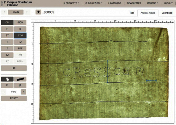In seguito all’imponente lavoro di digitalizzazione realizzato dalla Fondazione Fedrigoni Fabriano il Corpus Chartarum Fabriano (Ccf), la raccolta di carte filigranate prodotte dai mastri cartai di Fabriano dal 1267 ai giorni nostri, è ora disponibile per la consultazione on-line. Un progetto straordinario che consegna agli studiosi della carta un prezioso strumento per la datazione di documenti, manoscritti e incunaboli sine data et loco conservati negli archivi di tutto il mondo. Nel 2016 la Fondazione ha acquisito le 2.213 carte antiche fabrianesi raccolte dal filigranologo Augusto Zonghi. La collezione dal valore inestimabile e giudicata “unica al mondo” all’esposizione universale di Parigi del 1900 si è così unita alla raccolta dell’Archivio delle Cartiere Miliani costituendo il Corpus Chartarum Fabriano (Ccf).