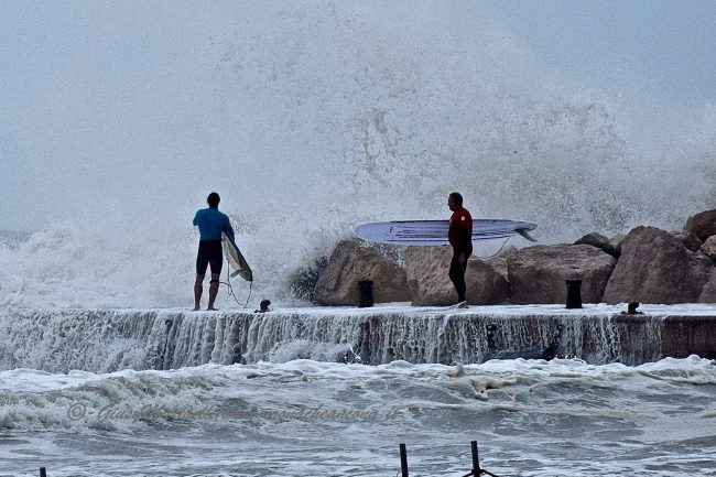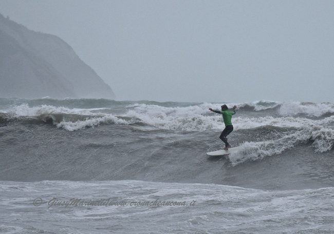 Maltempo a Portonovo: i surfisti invadono la baia. Vento e freddo non hanno fermato gli amanti della tavola che questa mattina hanno raggiunto il mare di Portonovo per cavalcare l’onda perfetta. Ad ammirare le loro prodezze, un manipolo di curiosi.