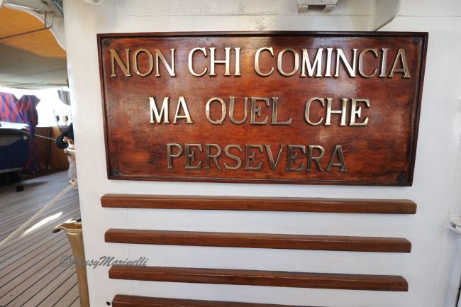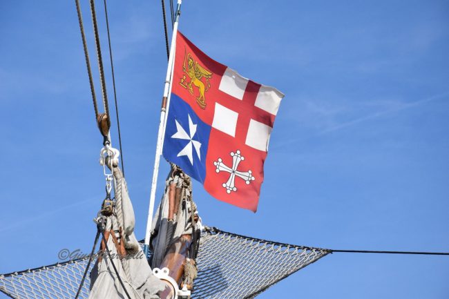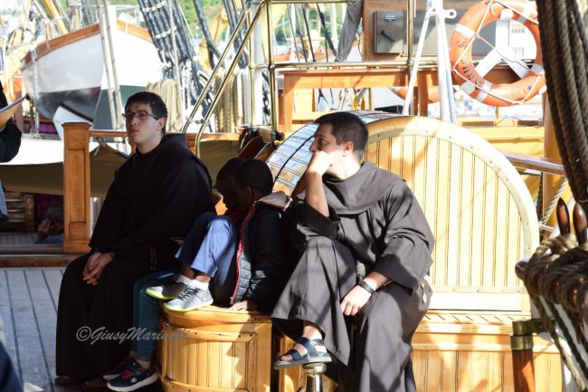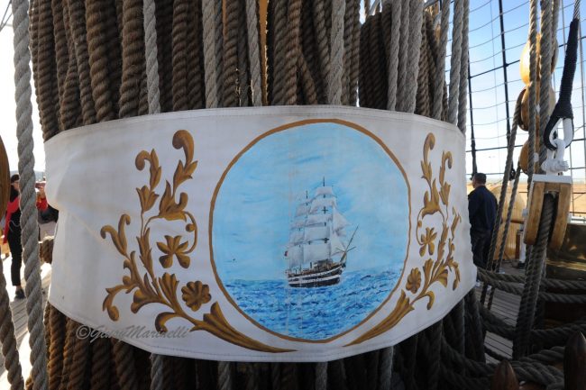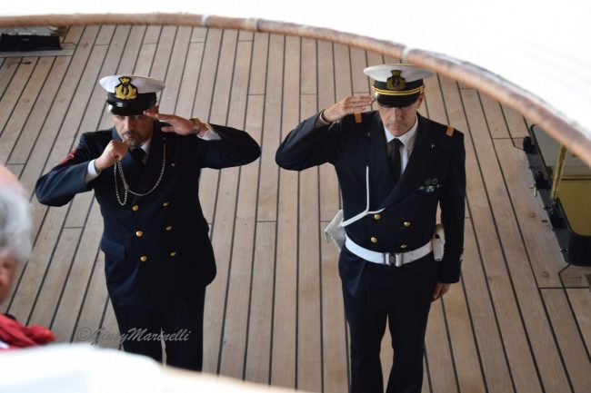 Simboli di pace declinati anche dalla Vespucci, che batte bandiera italiana ma anche delle Nazioni Unite di cui è ambasciatrice, come ricorda il comandante Costantino.