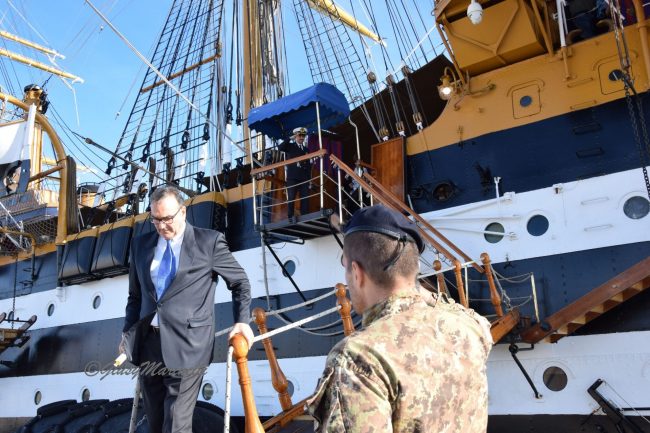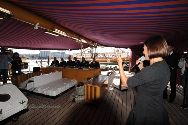 «È una nave simbolo dell’Italia nel mondo e portatrice di pace, che solca i mari ed unisce i popoli», fa eco la sottosegretaria al ministero dello Sviluppo economico, Alessia Morani, a cui sono state affidate le conclusioni e che, in separata sede, si è confrontata con Giampieri su tematiche fondamentali per il porto dorico, come l’ampliamento di Fincantieri ed il banchinamento del Molo Clementino, «dimostrando l’interesse del pubblico per questi progetti», sottolinea il presidente dell’Ap.