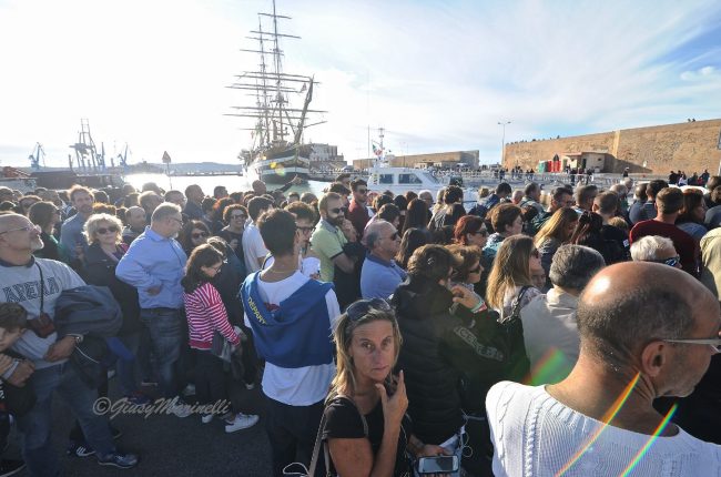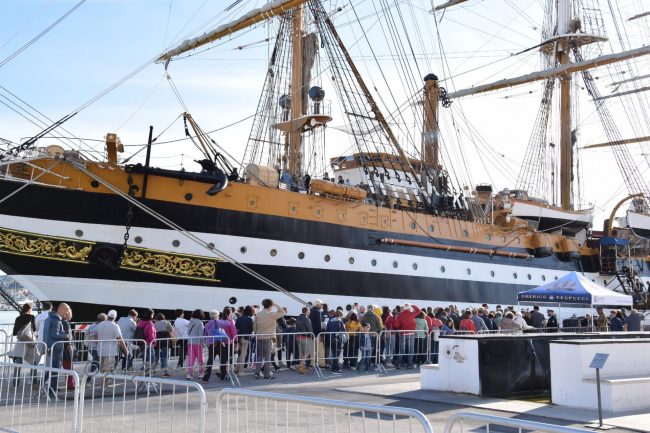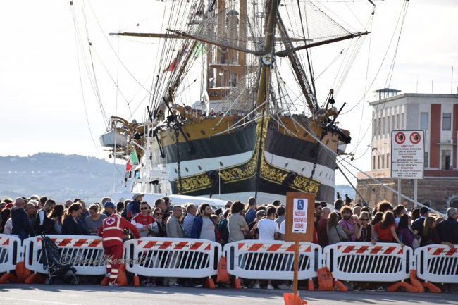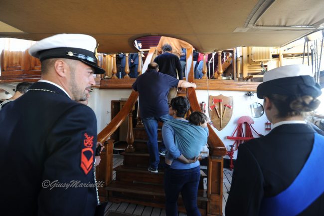 È però negli occhi e nelle parole dei visitatori che si capisce il vero valore della Vespucci. «Mio figlio è marinaio ed oggi è anche il suo compleanno – commenta Rossella Vittori, di Monte Granaro, tra i primi a salire a bordo insieme a marito figlio e nipote – Ci tenevamo molto ad essere qui perché questa nave è veramente stupenda».