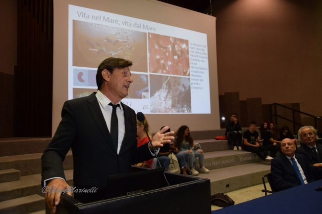 Il rettore dell’Univpm, Sauro Longhi ha ricordato come l’ateneo sia da anni all’avanguardia proprio nella eco ricerca per un nuovo modello di sviluppo: «Stiamo coordinando il più grande progetto di restauro di ambienti marini nel mondo, e abbiamo lanciato il progetto campagna “Univpm sotenibile, che bandisce, tra l’altro, l’uso di contenitori e stoviglie di plastica in tutti i bar e le aree di ristoro delle facoltà. Con il progetto “Univpm Sostenibile”, la Politecnica delle Marche dà un importante segnale pratico a conferma del ruolo che da anni la vede in prima linea nella ricerca scientifica sull’impatto delle microplastiche negli oceani. Merito soprattutto del Dipartimento di Scienze della Vita e dell’Ambiente, che ha coordinato le attività di monitoraggio dell’importante progetto europeo “Jpioceans”: confermati i livelli impressionanti di microplastiche negli oceani e l’elevata frequenza con cui queste particelle si ritrovano nelle comuni specie marine.
