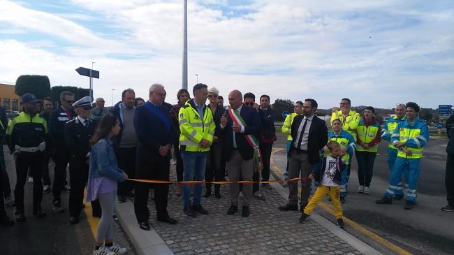 Osimo Stazione, inaugurata la nuova rotatoria lungo la statale. Alle 15 il taglio del nastro alla presenza del sindaco Simone Pugnaloni, del presidente del consiglio comunale Giorgio Campanari, del consigliere provinciale Lorenzo Catraro e di un rappresentante Anas, l’ingegner Francesco Morbidoni. La rotonda è accessibile dallo scorso agosto, ma è stata inaugurata solo oggi con i lavori terminati per l’istallazione della segnaletica. Il primo cittadino aveva parlato di un’opera «attesa da trent’anni», tanto è importante come snodo alla viabilità della statale. I lavori per la rotatoria sono durati circa un paio di mesi, per un costo complessivo di circa 800mila euro. Dopo il taglio del nastro, è iniziata la manifestazione ‘Due Passi all’Aria’, con la statale sgomberata dal traffico dei veicoli fino alla rotatoria di Monte Camillone. Eventi, musica e mercatini fino alle 22. Verso le 13,30, la polizia locale è stata costretta a portare via con il carro attrezzi le auto parcheggiate in divieto di sosta sulla piazzetta della stazione ferroviaria.
