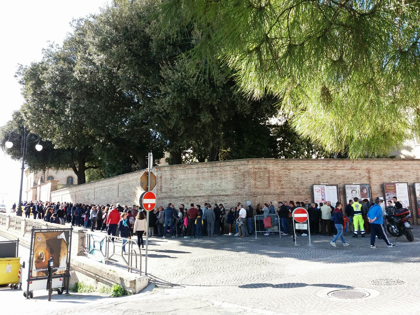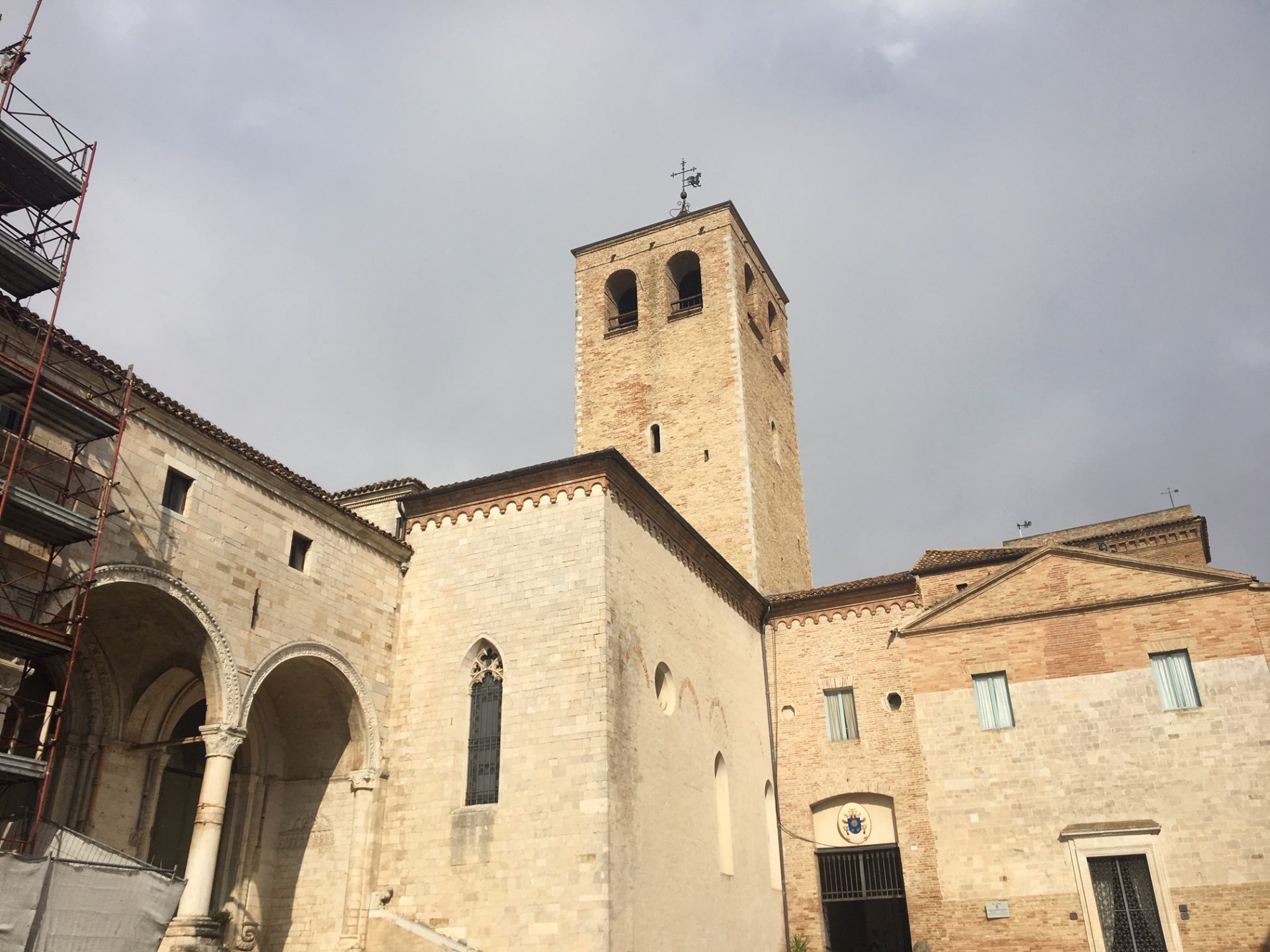 OSIMO, IL COMPLESSO CATTEDRALE SAN LEOPARDO– Giorni e orari di apertura_ sabato 12/10, ore 15/18; domenica 13/10, ore 10-12:30 / 15-18 (Piazza Duomo) La Cattedrale di S. Leopardo è una costruzione risalente all’ VIII sec. realizzata sopra l’antico tempio pagano dedicato a Esculapio e Igea. Nei secoli XII-XIV venne ristrutturata in forme romanico-gotiche e successivamente restaurata. L’attuale facciata nel cortile è stata adattata alla fine del XVI sec. Il fronte che prospetta sulla piazza presenta una ampia scalinata con un protiro sotto il quale si trovano due preziosi portali ogivali in pietra, scolpiti probabilmente tra il IX e l’XI sec. Sulla parete di destra si trova un’interessante lunetta dello stesso periodo su cui è scolpita la Vergine col Bambino e gli Apostoli. A fianco della Cattedrale si trova il Battistero del XVII sec. Qui le pitture su tavola sul soffitto a cassettoni sono del pittore di Jesi Antonio Sarti mentre il fonte battesimale, posto al centro, è in bronzo ed è opera dei f.lli Jacometti di Recanati. Nel cortile all’interno del palazzo dell’Episcopio si trova il Museo Diocesano con le sue preziose opere d’arte.