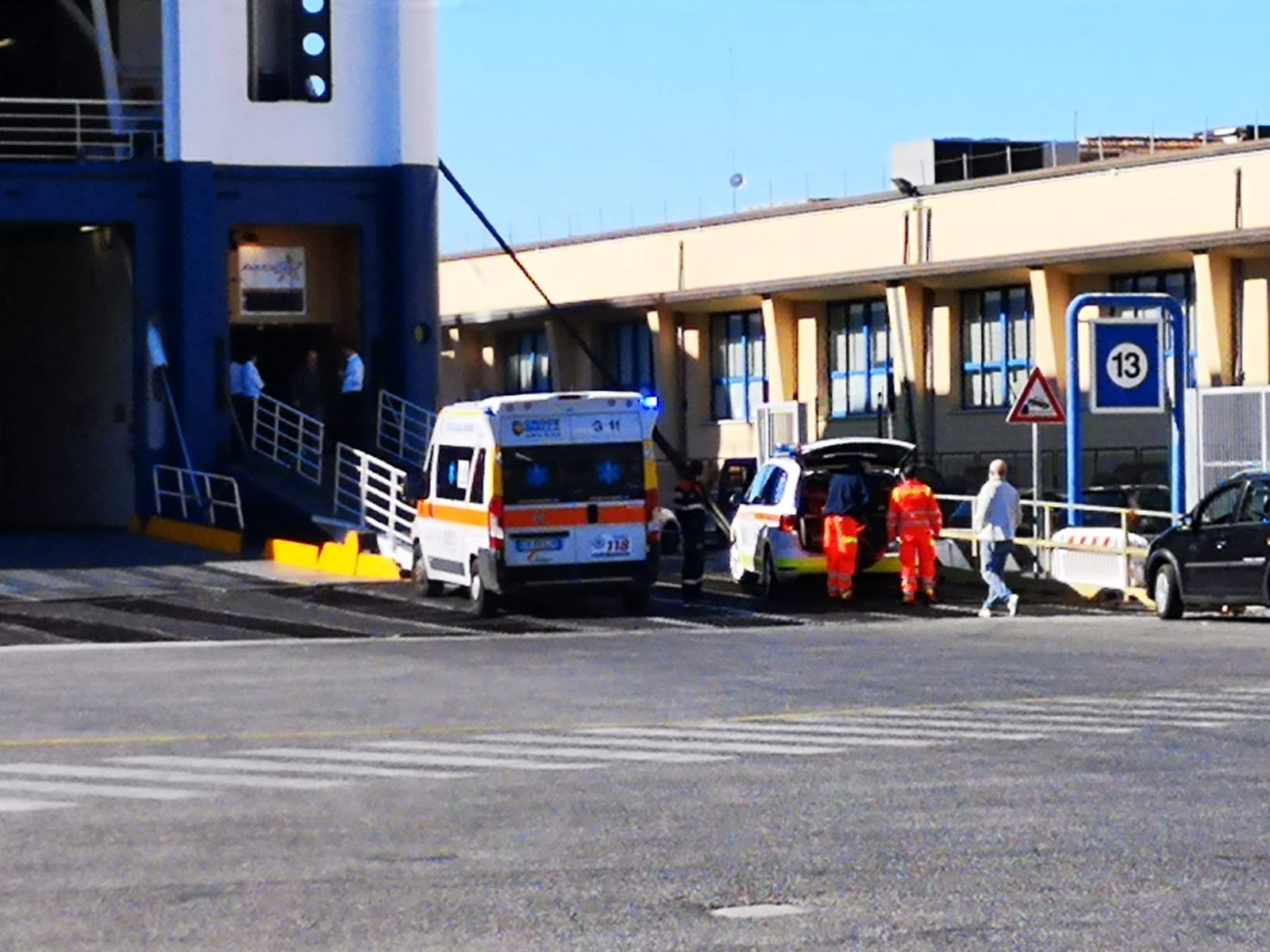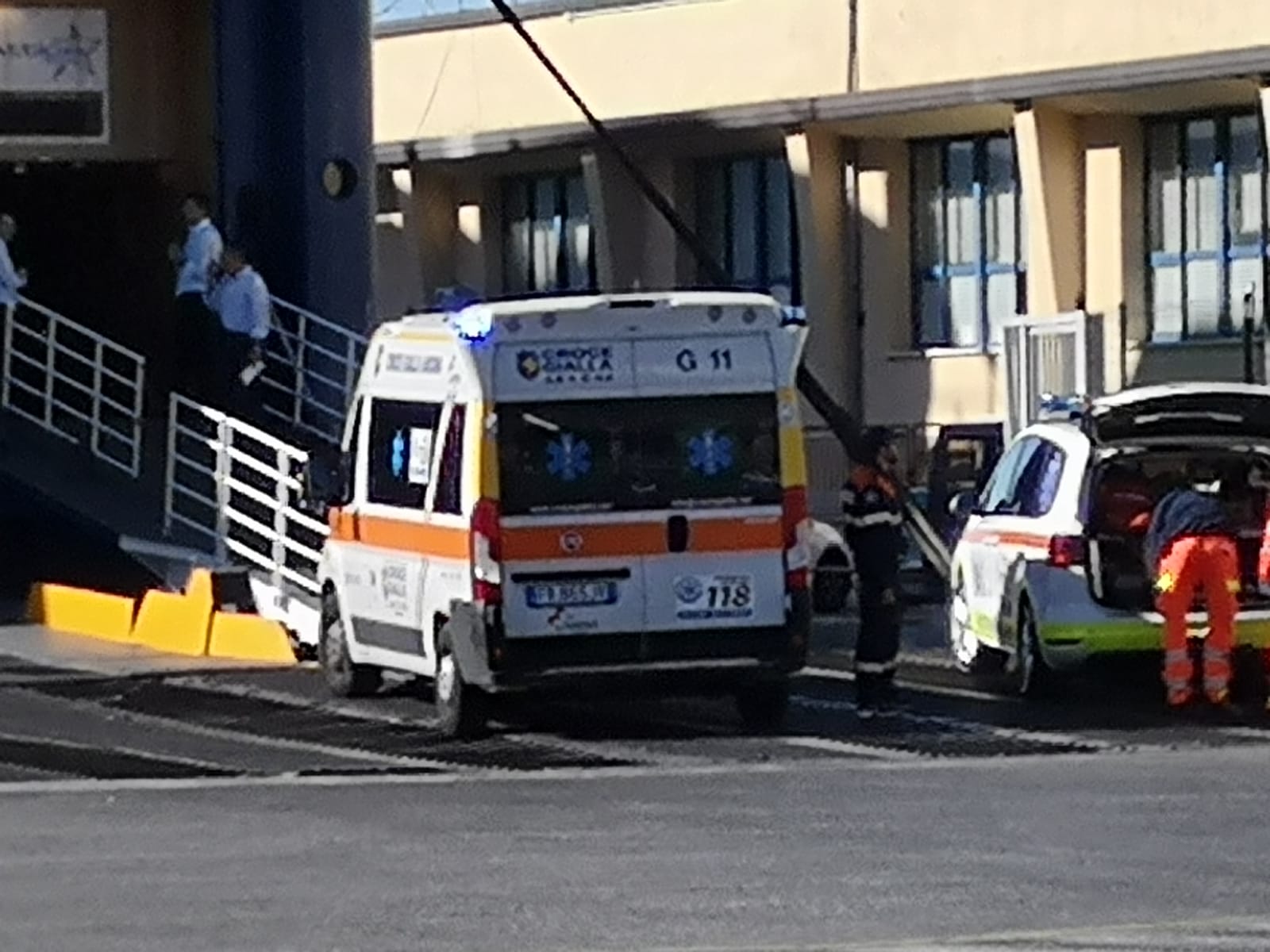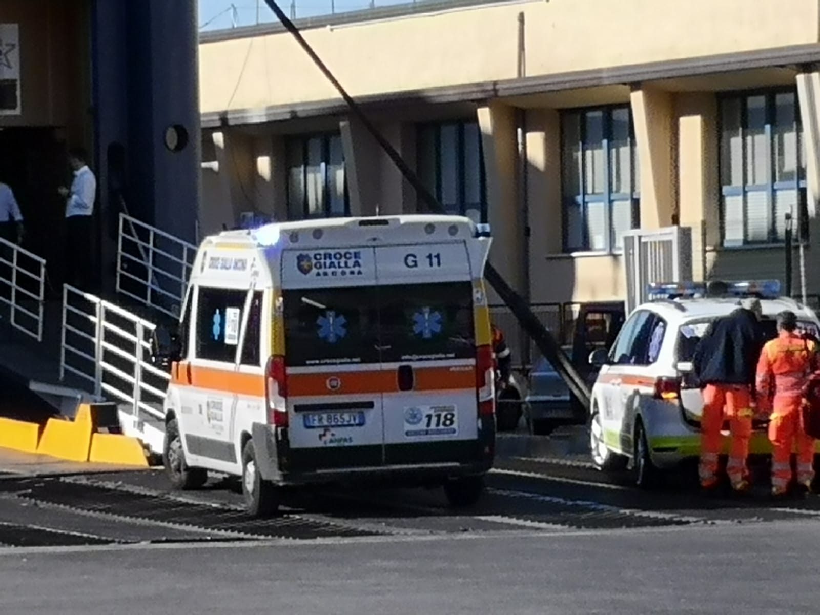 L’ambulanza della Croce Gialla e l’automedica del 118 al porto per portare i soccorsi oggi pomeriggio