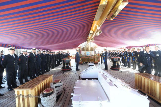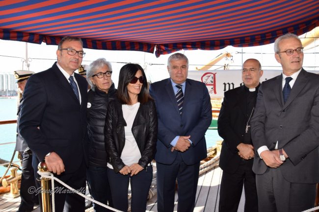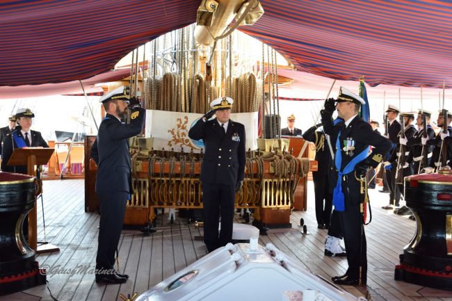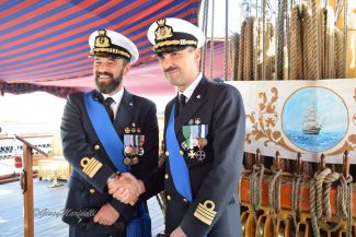 Questo primo pomeriggio, la nave scuola della Marina Militare ha lasciato il porto dorico, salpando alla volta di Trieste. La navigazione verso il nord Adriatico è stata ripresa non prima della cerimonia del passaggio di consegne del comando della nave. La Vespucci è ora nelle mani del capitano di vascello Gianfranco Bacchi. Forlivese, è il 122esimo comandante della nave. Succede a Stefano Costantino. La cerimonia si è svolta alla presenza dell’ammiraglio di squadra Donato Marzano. Tutti e tre si sono formati sulla nave più bella del mondo. Costantino, che va al Comando di Stato maggiore a Roma, ha augurato al suo successore «mare calmo, buon vento e vele al largo». Bacchi si è detto detto «orgoglioso ed emozionato” di prendere il comando della nave “dove ho fatto la campagna addestrativa 30 anni fa». A bordo anche l’arcivescovo Angelo Spina, il prefetto D’Acunto, il questore Cracovia, il presidente dell’autorità di sistema portuale Rodolfo Giampieri, l’assessore Ida Simonella.