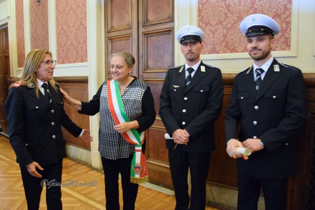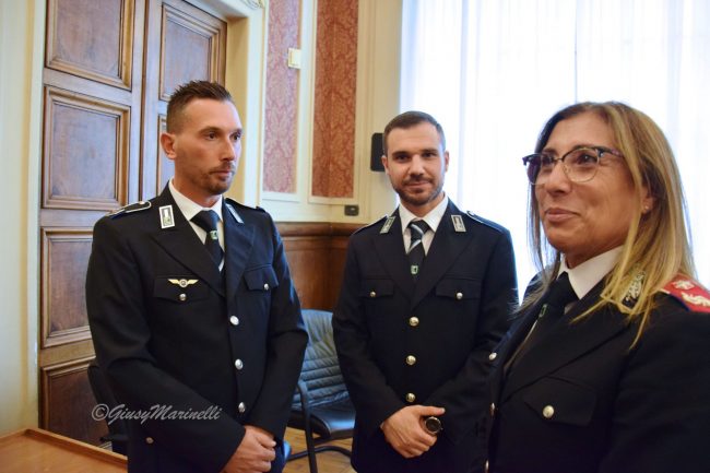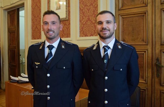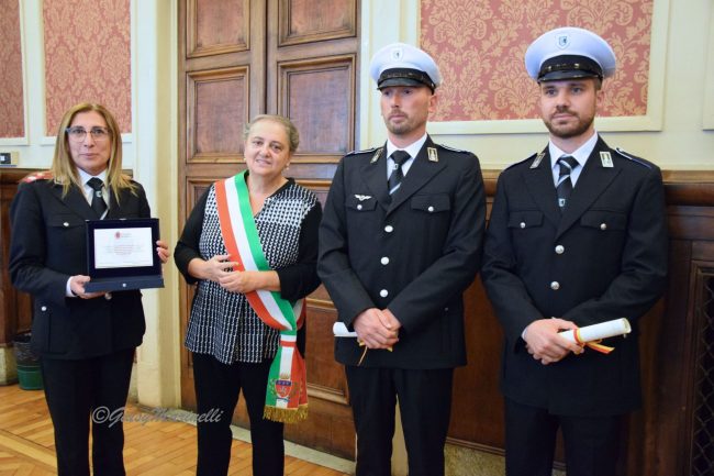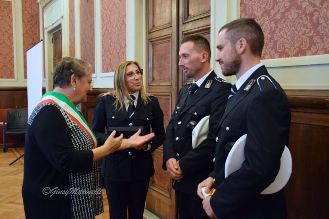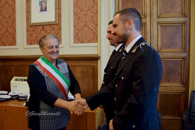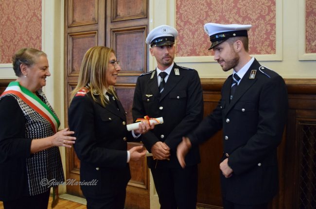 «Abbiamo voluto sottolineare in modo ufficiale il loro operato in una circostanza fuori dall’ordinario, fuori dalla quotidianità di un servizio pur impegnativo e importante per la città: in questo specifico caso i nostri agenti sono andati ‘oltre’». Con queste parole il sindaco Valeria Mancinelli ha elogiato e ringraziato i due agenti della Polizia Municipale che il 23 settembre scorso, durante il nubifragio che si era abbattuto sulla città, hanno prestato soccorso a due automobilisti rimasti intrappolati nel loro autoveicolo, nel sottopasso di via Macerata. I premiati sono Francesco Catalani e Alex Barattini, entrambi anconetani (40 anni il primo e 32 anni il secondo). Ha ricordato la comandante della Polizia Municipale, Liliana Rovaldi: «si immersero nell’acqua mista a fango che aveva riempito il sottopasso di via Macerata e riuscirono a trarre in salvo, a nuoto, i due occupanti, uno dei quali in stato di ebbrezza. Un intervento non facile, considerando che erano appesantiti dalle divise impregnate d’acqua, il livello dell’acqua era alto. Il conducente difficilmente si sarebbe salvato senza l’intervento dei nostri colleghi». «Un riconoscimento emblematico indirizzato a loro – ha sottolineato il sindaco – e al Corpo che complessivamente sta vivendo un momento proficuo di ricambio. Abbiamo assunto 17 agenti, ne assumeremo altri 10, c’è un bel ricambio generazionale con un apporto di energie e entusiasmo che si sposa con l’esperienza di chi opera da più tempo. Cominciano a rivedersi i vigili urbani su strada ed è esattamente quello che ci chiede la città».