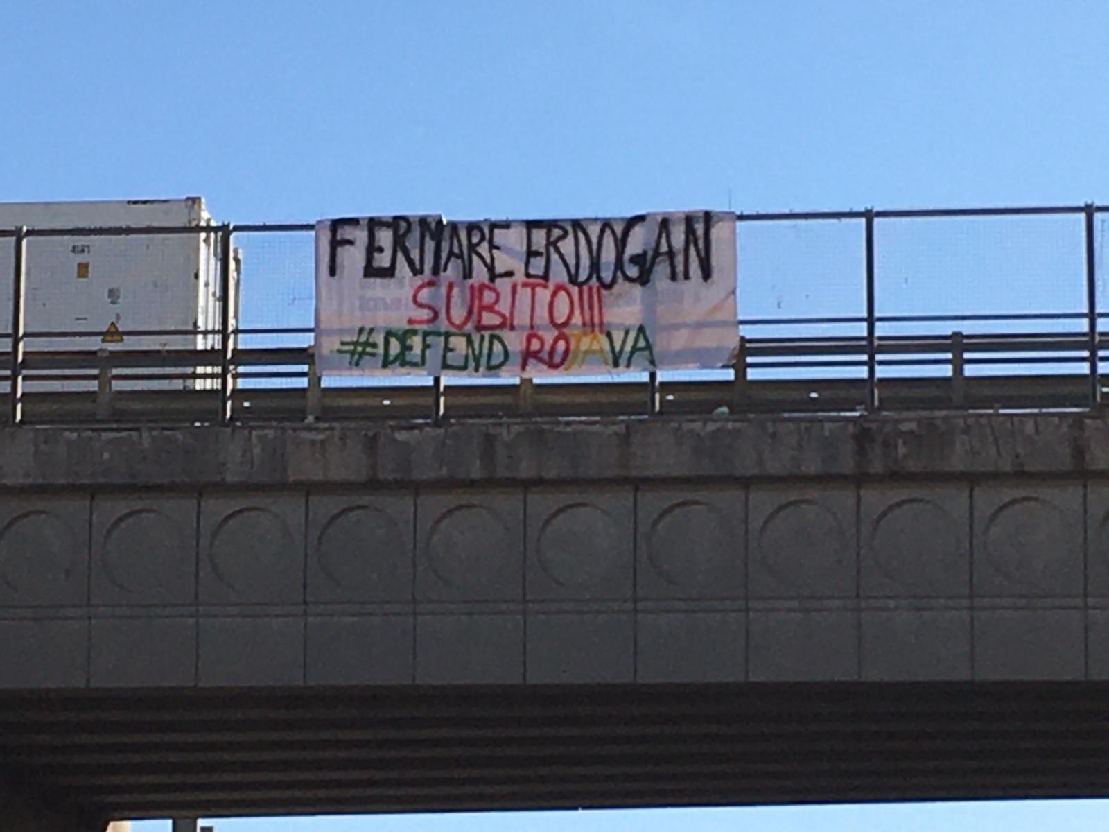 Ancona solidale con i curdi: striscioni sui viadotti