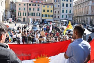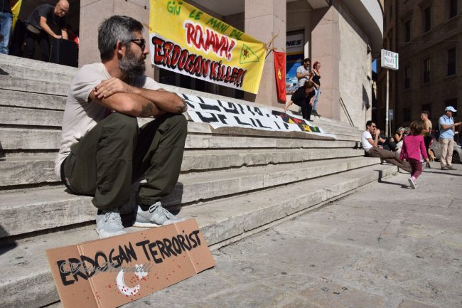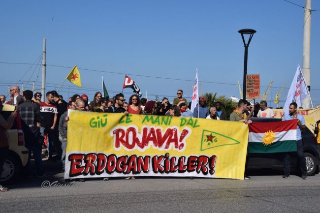 La manifestazione si è conclusa davanti al Consolato turco. Dopo il presidio in piazza della Repubblica i circa duecento manifestanti radunati nel capoluogo hanno sfilato per qualche decina di metri fino alla sede diplomatica del governo di Ankara di via XXIX Settembre, in protesta contro l’attacco al popolo curdo della Siria del nord-est sferrato questi giorni. “Giù le mani dal Rojava. Erdogan Killer”, la scritta sul drappo portato alla testa del corteo che è partito spontaneamente.