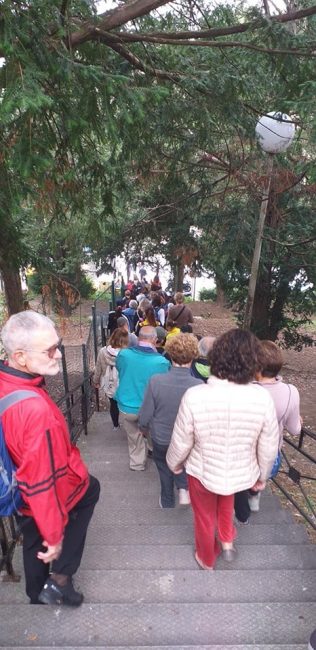 Molte adesioni alla ‘Giornata del camminare 2019’ organizzata ad Osimo. Stamattina in molti hanno passeggiato insieme per 7 chilometri con l’obiettivo di visitare le cinque fonti storiche della città ascoltando il racconto delle guide dello Iat. «Un corteo straordinario partito dal centro storico e alla scoperta delle antiche fonti: oltre a Fonte Magna, fonte Fellonica, usata in antichità per la lavorazione della lana, una delle fonti meno conosciute del territorio osimano, Fonte del Gattuccio, Fonte del Tesoro, Fonte Montecesa. Un ringraziamento speciale a tutte le forze che hanno permesso la realizzazione della giornata, dalla polizia locale al gruppo radioamatori, agli amici della Croce rossa e aziende Asso e Osimo servizi» ha commentatio l’assessora Michela Glorio che ha partecipato al tour guidato. Un momento di aggregazione al quale ha deciso di aderire anche il sindaco Simone Pugnaloni con i consiglieri comunali di maggioranza Eliana Flamini e Tommaso Spilli. «Riscoprire un tratto identitario della nostra citta’ passeggiando tra le fonti storiche osimane è stato davvero emozionante – ha commentato il primo cittadino di Osimo – Una vasta platea di partecipanti ad ascoltare la storia di ciascuna delle fonti lungo il percorso animato dalla responsabile ufficio turistico di Osimo Simona Palombarani. Una passeggiata culturale che ci fa anche riscoprire le qualita’ del passeggio all’aria aperta, uno sport per eccellenza non competitivo, da esercitare nel tempo libero che fa bene alla salute» Al termine della passeggiata i partecipanti hanno potuto visitare il Museo del Figurino Storico.