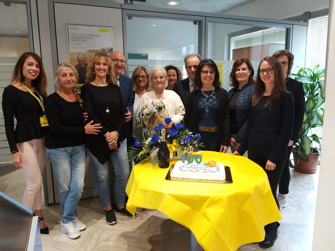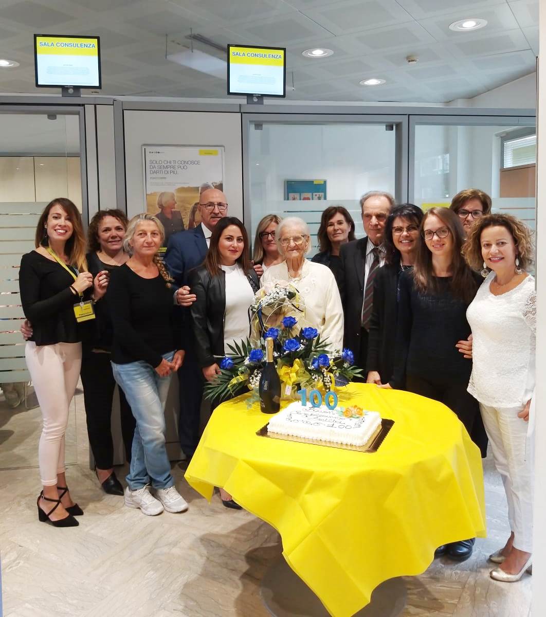 Quella di Poste Italiane è una storia di oltre 150 anni trascorsi tra innovazione tecnologica e rinnovamento nell’offerta di servizi, ma anche una storia ricca di tradizione, di relazioni e aneddoti curiosi che ogni giorno avvengono nei 12.800 Uffici Postali del territorio nazionale. Tra queste c’è la storia di Emilia Consalvo, pensionata di Castelfidardo che per tanti anni, insieme al marito Marino, ha gestito il sale e tabacchi della frazione di San Rocchetto. Nonna Emilia, per i suoi 100 anni ha scelto di condividere questo importante traguardo accogliendo l’invito di Poste Italiane a festeggiare il compleanno nell’Ufficio Postale di via Carducci, che frequenta ormai da decenni. Come spesso accade, non solo nei piccoli centri, tra i dipendenti e il cliente si instaura un rapporto speciale di affetto, amicizia e fiducia. Accolta dall’affetto del personale della sede, dal direttore dell’Ufficio Postale Giuseppe Sasso, insieme al figlio Franco, alla nipote e pronipote, la signora Emilia ha tagliato una torta speciale di Poste Italiane e brindato insieme a parenti e comunità per questa speciale occasione.
