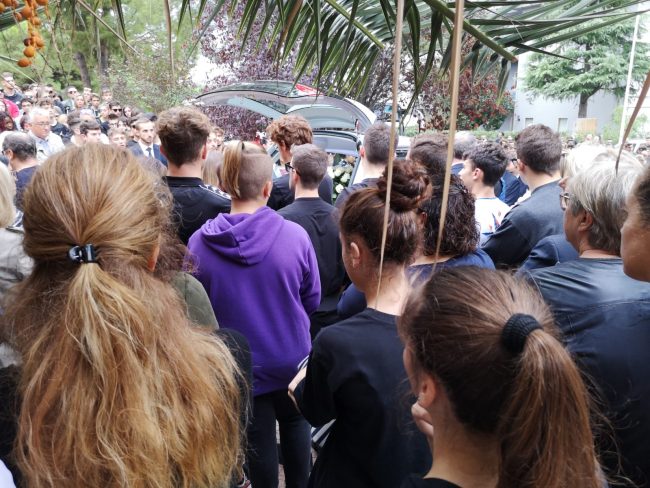 Tra il profumo d’incenso e quello dei mazzi di rose bianche, tra le note del coro e gli applausi che hanno animato la funzione, sono scorse via le parole dedicate ad Elia anche dagli amici. I compagni di classe ed i professori hanno ricordato in un affettuoso messaggio come ogni mattina portasse «un raggio di sole nell’aula. In questi anni – hanno aggiunto – hai sofferto per la tua storia che ti ha modificato ma in ognuno di noi ha lasciato ricordi che nessuno potrà portarci via. Come dicevi tu ‘…la vita è complessa ma dilettevole…’ e poi non ci hai più risolto il dubbio: le lasagne vanno fatte con la besciamella o con la provola? Ciao Eli, mi raccomando sempre un passo avanti». Risate e lacrime. Commovente anche l’addio degli amici umbri che hanno rammentato i momenti trascorsi insieme: «Continueremo ad aspettare che torni a Montone. A presto e buon viaggio». E’ sceso il silenzio invece quando un altro gruppo di amici ha fatto ascoltare in chiesa la voce di Elia che enunciava un decalogo di consigli semi serio ripetendo ‘quelli che….’ Lunghissima la fila di persone che al termine della cerimonia funebre sono corse ad abbracciare la mamma di Elia, dignitosa nel suo immenso dolore. Un gesto simbolico a nome di una città sotto choc, ammutolita che è sfociato in un lunghissimo applauso quando il feretro è uscito sul sagrato, sotto un cielo ormai incupito, accompagnato dal suono a lutto delle campane e dalla voce del rapper Luchè che cantava dagli altoparlanti la sua hit ‘Attraverso me’. La messa dell’ottavario è fissata per domenica prossima alle 18,30 sempre nella chiesa della Sacra Famiglia.