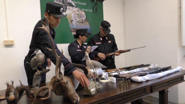Nel corso delle perquisizioni i militari hanno rinvenuto e sequestrato oltre a “lacci” e catene metallici posizionati in bosco per la cattura di cinghiali ed altri mammiferi selvatici, diversi esemplari imbalsamati di specie tutelate: tra gli uccelli un picchio (particolarmente protetto), un chiurlo, una nitticora ed un’upupa, tra i mammiferi uno scoiattolo ed un daino. All’interno di congelatori industriali i bracconieri detenevano 18 confezioni di carne di capriolo e di daino provento di bracconaggio. Ora gli indagati rischiano pene che vanno dal pagamento di pene pecuniarie fino alla reclusione, per le condotte di bracconaggio e detenzione di specie particolarmente protette. Inoltre sono stati riscontrati i reati di detenzione abusiva di munizioni non denunciate e arma clandestina per cui si è proceduto al sequestro di 10 fucili da caccia, 261 munizioni a palla ed una pistola senza matricola. Inoltre sono state ritirate loro le licenze di caccia e rischiano la sospensione da parte dell’Autorità di Pubblica Sicurezza.