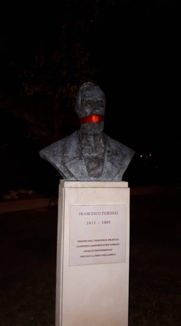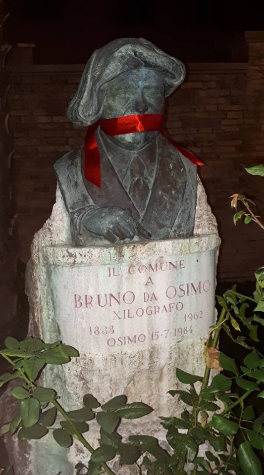 Foto choc dei busti in bronzo imbavagliati degli uomini illustri di Osimo che punteggiano le aiuole dei giardini di Piazza Nuova. E’ l’ultimo blitz dai militanti di CasaPound messo in atto sulle statue di tutta Italia che in città si è concetrato su quelle dello xilografo Bruno da Osimo, del pioniere dell’agricoltura locale, il conte Augusto Sinibaldi, e del conte Francesco Fiorenzi, deputato osimano nel primo parlamento italiano. «Una protesta simbolica con la quale il movimento della tartaruga frecciata ha inteso continuare a tenere alta l’attenzione sulla censura in Rete, a 40 giorni dalla disattivazione delle sue pagine e dei profili dei suoi attivisti da parte delle piattaforme Facebook e Instagram e in attesa della prima udienza della causa intentata contro i siti di Mark Zuckerberg, fissata per il 13 novembre» spiega in una nota CasaPound che domani pomeriggio parteciperà alla manifestazione organizzata dal centro destra in piazza San Giovanni a Roma, «senza simboli ma con centinaia di tricolori» annuncia. Statue imbavagliate di rosso anche ad Ancona e in altre città delle Marche: Ascoli Piceno, Macerata, Fabriano, Senigallia. Ad Ancona è toccato alla statua di ‘Violata’, ad Ascoli Piceno sono stati presi di mira i busti nel giardino comunale e la statua del beato Marcucci.