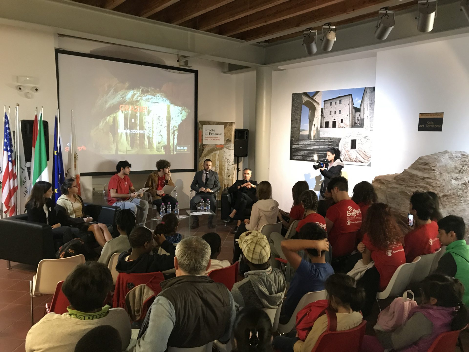 Oltre cento bambini e ragazzi a Frasassi per la presentazione finale del progetto ‘Grotte Consapevoli’ realizzato dal gruppo SottoSopra Ancona per Save The Children, Consorzio Frasassi. Sette consigli declinati in due diverse info-grafiche, e un video-racconto mostrato in anteprima durante la mattinata. Da oggi le Grotte di Frasassi hanno una segnaletica in più. Un maxi pannello affisso all’ingresso e delle gocce colorate appese ai corrimano dei bus navetta che dalla biglietteria conducono all’ingresso. All’interno delle infografica i 7 consigli, o buone pratiche per una visita più consapevole, che i ragazzi di SottoSopra hanno pensato e realizzato al fine di migliorare la fruibilità del percorso turistico ipogeo tra i più visitati in Europa e nel mondo. «Vedere una partecipazione così numerosa e attiva da parte dei giovani è il segnale che questa destinazione turistica è lo stimolo, per le nuove generazioni, ad abbracciare un turismo che sappia coniugare l’esperienza alla consapevolezza – ha affermato il sindaco di Genga, Marco Filipponi – il successo di questa iniziativa getta le basi per un felice proseguo di un percorso appena iniziato».