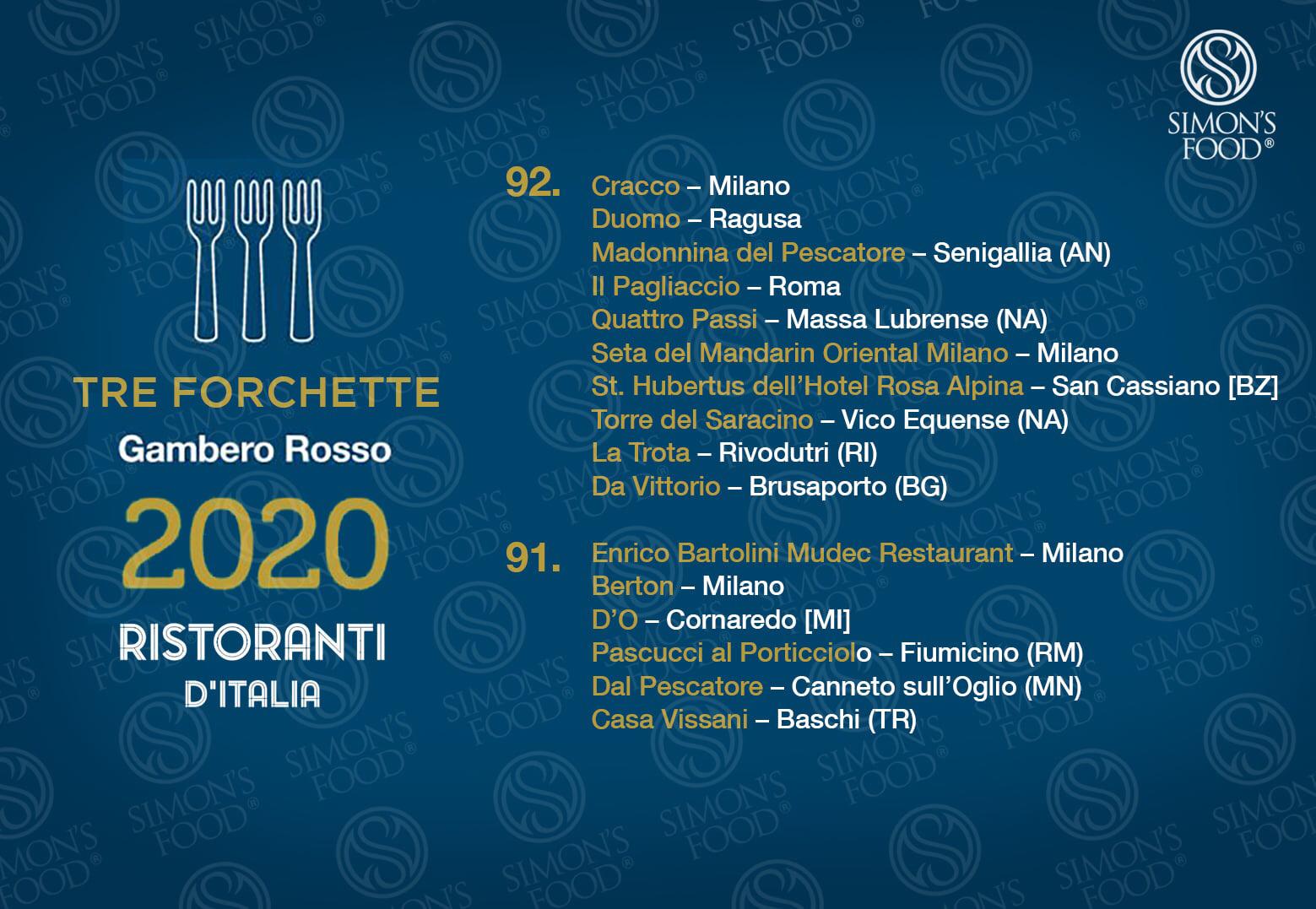 La Guida Ristoranti d’Italia del Gambero Rosso compie trent’anni. Tra i cambiamenti radicali dei nostri tempi e lo stesso vivido entusiasmo di sempre, gli autori della Guida hanno portato alla luce nuove entusiasmanti e giovani realtà, confermato grandi successi e conferito ulteriori riconoscimenti ai vertici del panorama gastronomico italiano. Primi tra tutti, tra i cambiamenti, i numeri, quest’anno più importanti che mai: Ristoranti d’Italia 2020 trova infatti al suo interno ben 2685 locali tra cui 18 premi speciali, 35 Tre forchette, 30 Tre gamberi, 10 Tre bottiglie, 4 Tre Mappamondi, 3 Tre Cocotte, 3 Tre boccali e la novità, 5 Due forchette rosse. In occasione dei trent’anni della Guida, a partire dal mattino di ieri, 28 ottobre, la Capitale, nella cornice dello Sheraton Rome Hotel di via del Pattinaggio, ha accolto gli addetti ai lavori e i protagonisti della guida per la conferenza stampa di presentazione e la consegna dei premi.