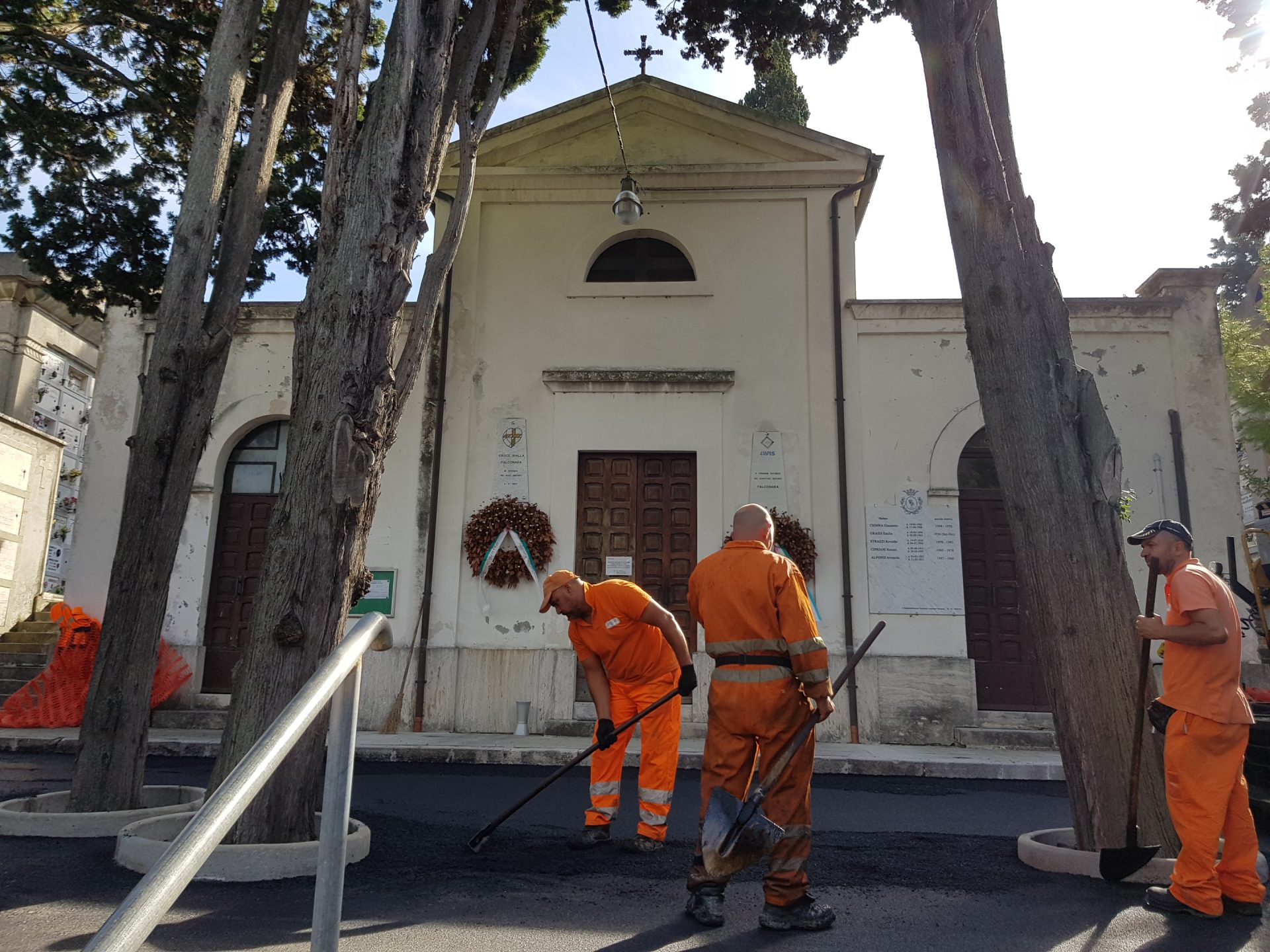 Anche la chiesetta all’interno del cimitero di Falconara, con una serie di interventi edilizi, è stata oggetto dei lavori di manutenzione ordinaria che hanno riguardato in generale tutto il camposanto di via Castellaraccia. Per la chiesetta è stata eseguita da Marche Multiservizi la sistemazione e la ritinteggiatura interna, sono state sostituite le canalette di scolo ed è stato asfaltato il piccolo piazzale davanti all’ingresso. Sono stati sistemati con nuova ghiaia anche i vialetti circostanti, con lo scopo di rendere più agevole il percorso per raggiungere i colombari. Già il mese scorso erano state inoltre sostituite alcune porzioni delle condotte idriche interne al cimitero. La scorsa settimana è stata completata la potatura degli alberi più grandi e il diserbo all’interno dell’area. Il diserbo ha interessato anche il cimitero di Castelferretti, dove sono state anche riattivate le misure per il contenimento dei colombi.