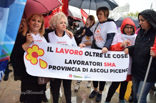 Fischietti, bandiere, striscioni e slogan per rivendicare il diritto al lavoro e la certezza di un futuro che, ad oggi, sembra essere tutto da scrivere. E’ scattata questa mattina ad Ancona la manifestazione regionale di protesta legata alla cessione del gruppo Sma-Auchan a Conad.