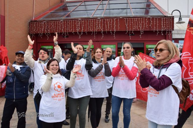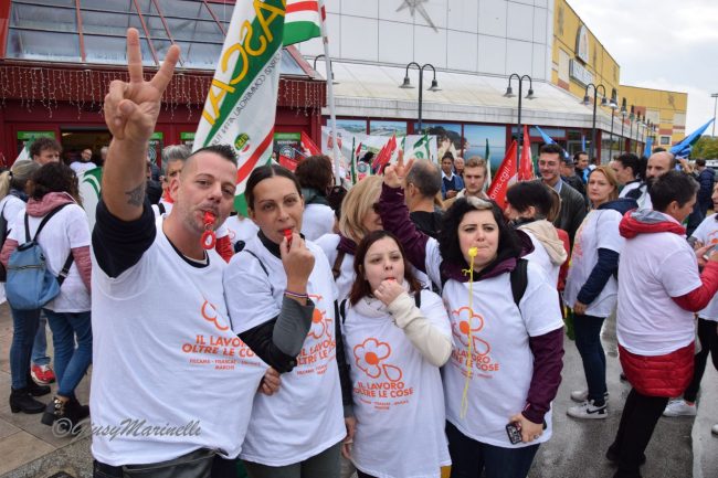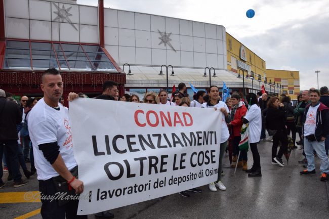 «Ancora non sappiamo che fine farà il nostro punto vendita – dice Tiziana Morettini del Simply di Falconara -, siamo in attesa di sapere qualcosa di più preciso. Speriamo di poter riconfermare i nostri ruoli e riportare il punto vendita in auge, proprio come era una volta. Significava lavorare in maniera sana e gratificante. La preoccupazione maggiore è quella del posto di lavoro, ma anche quello di poter riconfermare il nostro ruolo attraverso un contratto definito che possa tutelare la nostra attività». La voce di Fabio Perini, dipendente del deposito di Osimo: «Le preoccupazioni sono tante perchè Conad sta cercando di esautorare la distribuzione nella nostra provincia cercando un guadagno economico e sfruttando i depositi di Forlì e Monsampolo del Tronto. Il rischio più grosso non è tanto la chiusura che potrebbe avvenire da un giorno all’altro, ma il depotenziamento che piano piano ci porterà a una morte lenta. Chiediamo garanzie a Conad che fino a questo momento ha portato avanti un’operazione esclusivamente finanziaria e commerciale». Monica Andreucci lavora al centro di via Scataglini da oltre vent’anni: «Lo sciopero riguarda la precarietà che ci verrà riservata dopo questo passaggio. Precarietà che non riguarda solo il filone occupazionale, ma anche il mantenimento dei diritti acquisiti difesi a denti stretti nel corso degli ultimi anni. La nostra non è una lotta semplice».