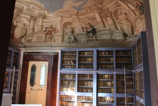 FRONTE SU VIA BERNABEI: LOGISTICA E PREZIOSI FONDI LIBRARI – L’unica nota stonata che non rende completa la virtuosa rivoluzione logistica della “Benincasa”, l’assenza di fondi nel bilancio comunale per aprire a visite guidate il secondo piano dell’ala che apre su via Bernabei, dove le varie sale sono ornate con stucchi (in parte lesionati e da restaurare, mentre le pareti necessitano di saggi di staticità) e alcuni affreschi, caratterizzate inoltre dalla presenza di due antichi mappamondi del Greuter, uno terrestre e uno celeste. Nell’ala di via Bernabei – dove resteranno localizzati i vari uffici e la direzione – è prevista una risistemazione di buona parte dei prestigiosi fondi e collezioni, per lo più frutto di donazioni. Al piano terra sarà trasferito dal fronte dell’immobile che dà su piazza del Plebiscito il fondo Mancinforte della sezione musicale. Al secondo piano di via Bernabei resteranno Il fondo Nappi (stessa sezione musicale) che comprende 461 stampati e 241 manoscritti, con edizioni del ‘600 e del ‘700. La torre libraria, che rimarrà chiusa al pubblico, continuerà a conservare i lasciti di libri (consultabili) di alcune biblioteche private: quello del famoso psichiatra Gustavo Modena del 1959, dell’architetto Lorenzo Cesanelli (1966), del noto avvocato ebreo anconetano Giorgiio Terni (1966), il fondo Kurek-Gina del Vecchio (1974), la donazione Plinio Acquabuona (1992). Riposte nella torre, anche due prestigiose collezioni: quella sulla storia e la cultura di Ancona e le Marche, forte di 15.074 pezzi tra libri e opuscoli dal ‘400 in poi, di 809 periodici e di preziosi manoscritti, tra questi ultimi “La storia di Ancona” di Camillo Albertini (XVIII sec.), il “Portolano” di Grazioso Benincasa (XV sec.); quella del fondo fotografico Emilio Corsini, con circa 2000 immagini d’epoca digitalizzate, per l’80% del capoluogo dorico, tutte visibili on line.
