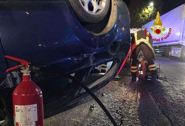 Urta un platano, finisce contro un muretto e si ribalta con l’auto. Notte di paura in via I maggio per un 24enne rimasto incastrato tra le lamiere di una Ford Focus. Una volta liberato, è stato trasferito d’urgenza al pronto soccorso di Torrette da un’ambulanza della Croce Rossa. E’ grave ma non è in pericolo di vita. Dopo lo schianto, avvenuto all’altezza del distributore Esso lungo la corsia sud, sul posto sono arrivati i vigili del fuoco per liberare il ragazzo che aveva anche sulle gambe il motore dell’auto, completamente accartocciata. Utilizzando motodivaricatore e cesoie idrauliche, hanno lavorato almeno mezz’ora per estrarre l’autista. Terminate le operazioni di soccorso, i vigili del fuoco hanno messo in sicurezza lo scenario dell’incidente.