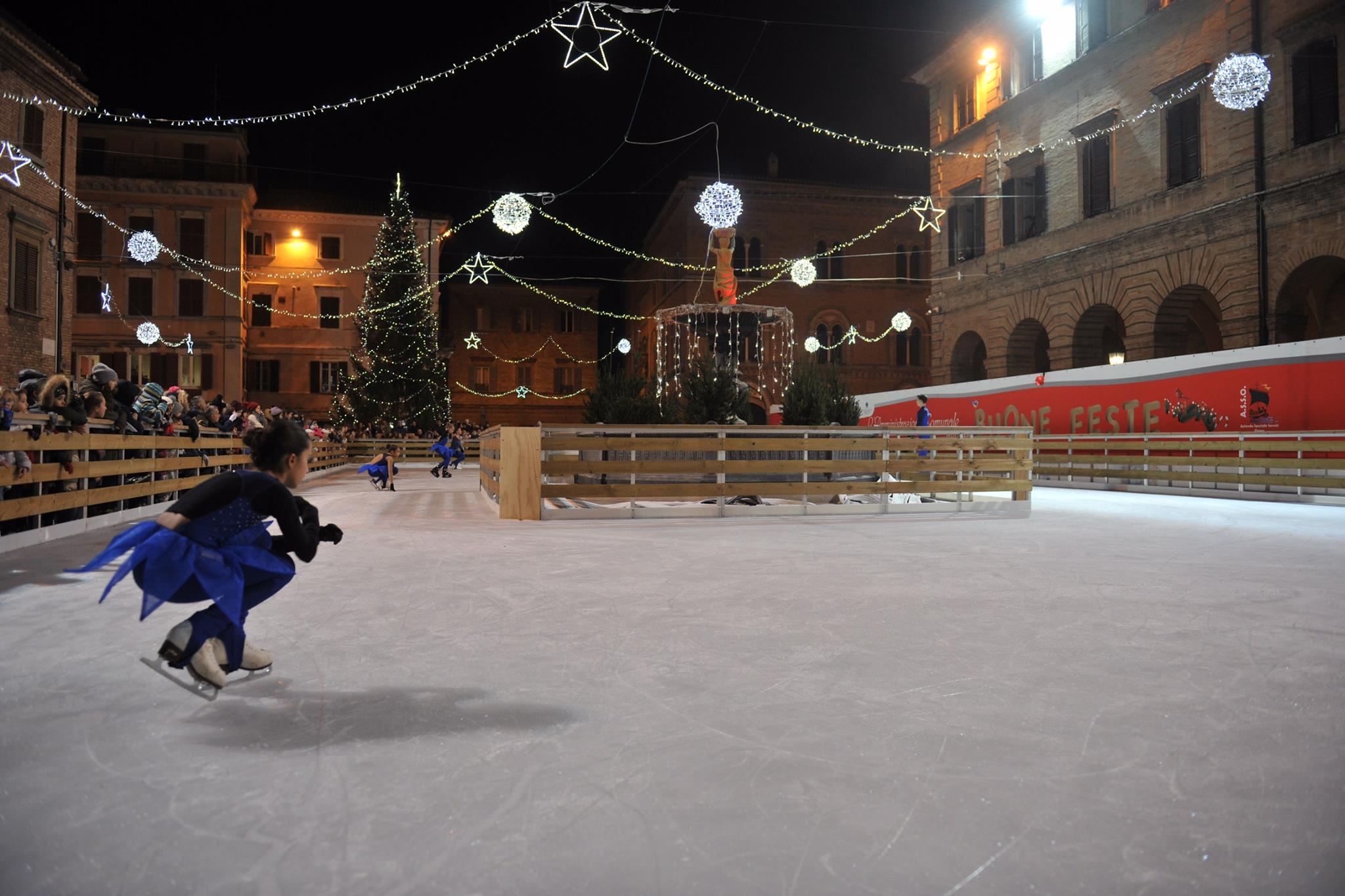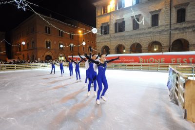 La pista di pattinaggio sul ghiaccio montata in piazza Boccolino per il Natale 2018 (foto Bruno Severini)