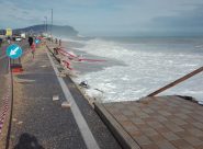 MALTEMPO – Crollate parti di marciapiedi della strada provinciale a Porto Recanati in zona Scossicci. Chiuso il ponte sul fiume Musone. Danni agli chalet, disagi anche a Porto Potenza e a Civitanova sul lungomare nord