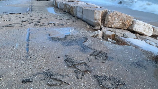 «Il progetto della scogliera sta andando avanti, sembra in modo positivo, ma l’iter burocratico lungo e macchinoso ci sta rallentando, i lavori dovevano essere fatti ieri e non domani – dice Alberto Berardi presidente Oasi Confartigianato – siamo in piena crisi, nessuno ci rimborsa e spendiamo continuamente. Se vogliono farci morire, come lungomare di Marina, basta dirlo che ce ne andiamo a lavorare da un’altra parte. Ho subìto molti danni all’esterno del locale, ma altre attività hanno subìto allagamenti e danni anche all’interno. Vogliamo solo sapere – conclude Berardi – se faranno le scogliere, quando con una data precisa e se vogliono salvare Marina. Servono le scogliere a largo e 30-40 metri di ripascimento, e servono urgentemente».