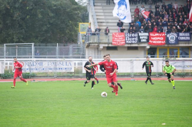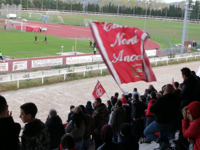 Dopo un paio di minuti un ispirato Castellano rientra sul destro e centra la base del palo, che fa esplodere la contestazione dei tifosi ospiti a fine primo tempo. Ad inizio ripresa Giambuzzi che prima calcia centralmente (Mallozzi blocca in due tempi) e poi raccoglie i primi timidi applausi dei tifosi dorici. Ai quali vengono i brividi qualche minuto dopo sulla girata di Castellano, contratta in angolo dalla difesa dorica. Dal corner di Moretti l’ex Adami incorna sul secondo palo e porta in vantaggio il Valdichienti Ponte, scatenando l’ira dei tifosi dell’Anconitana. Il Valdichienti continua a spingere e sfiora il raddoppio con il tiro a giro di Badiali. Respiro di sollievo per i tifosi dell’Anconitana, che gioiscono al 24′ grazie al colpo di testa di Mansour che regala il pari, sempre sugli sviluppi di un calcio d’angolo. Neanche il tempo di esultare che i locali si riportano in avanti con Castellano, che tocca quel che basta per superare Battistini e far varcare la linea alla palla. È il 29′: Valdichienti Ponte due, Anconitana uno. Puntuale la nuova contestazione dei supporters dorici, che durerà fino al triplice fischio. L’unico sussulto ospite è di Giambuzzi, che al 34′ chiama in causa un attento Mallozzi, il quale blinda il 2-1 definitivo.