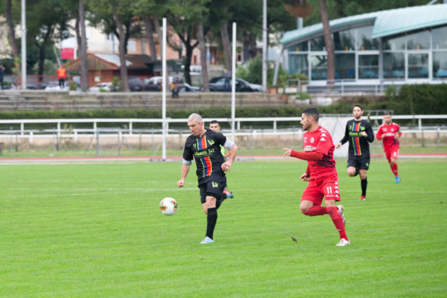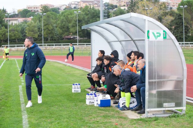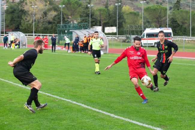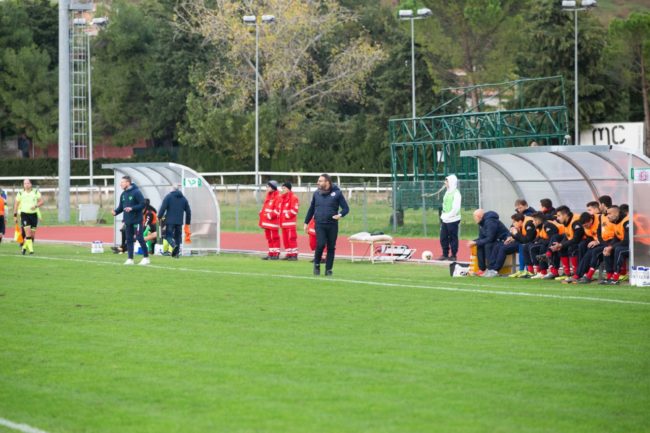 La cronaca. Mister Giandomenico deve fare a meno dello squalificato Passalacqua e dell’infortunato Ciucci, per questo si affida ad Enow al centro della difesa e all’under Emiliozzi al centro del campo, puntando in avanti sul tridente pesante formato dall’ex Adami, Pennacchietti e Castellano. Ciampelli invece schiera i biancorossi con un 4-4-2, ma tempo un quarto d’ora e ridisegna i suoi con un modulo speculare al Valdichienti: il 4-3-3, avanzando Mansour nel tridente e accentrando Giambuzzi nei tre di centrocampo. A metà primo tempo Emiliozzi dialoga e manda in porta Pennacchioni che gonfia la rete ma in posizione di fuorigioco. Il momento è favorevole al Valdichienti Ponte. Alla mezzora angolo di Moretti, Enow prolunga di testa sul secondo palo per Panichelli che scoordinato manda a lato da posizione ravvicinata. Poco dopo Giustozzi blocca facilmente un colpo di testa di Magnanelli. Nel frattempo Giandomenico è costretto a sostituire Pennacchioni per infortunio. Entra Badiali ed è subito pericoloso al 39′ con un fendente dalla distanza, deviato in angolo da Battistini.