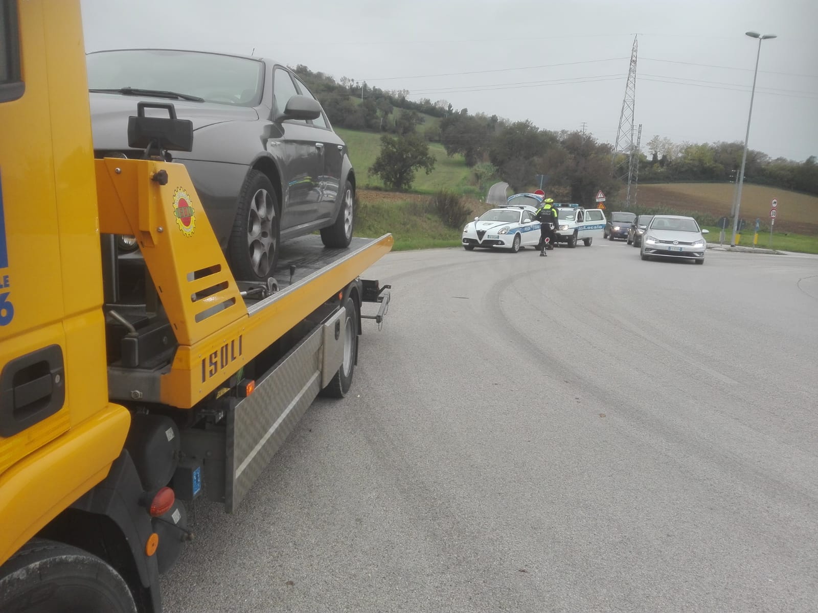 Il carro attrezzi che ha portato via i mezzi posti sotto sequestro perchè privi di copertura assicurativa