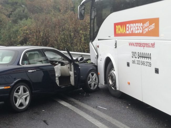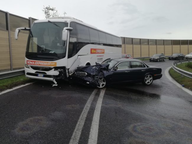 Auto invade la rampa d’ingresso in A14 e si schianta contro un autobus: feriti marito e moglie che erano a bordo della vettura. L’incidente è avvenuto poco dopo le 12 a Civitanova. La vettura, una Jaguar, con a bordo la coppia di Senigallia (lei, P. D. A., di 80 anni e lui, R. C., 82) ha imboccato la rampa in direzione di Ancona e, per cause in corso di accertamento, ha invaso la corsia opposta andata a schiantarsi contro un bus della linea Roma Express che stava uscendo dall’A14.