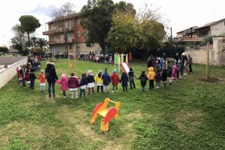 Una mattinata speciale, quella del 21 novembre, per i piccoli alunni delle scuole dell’infanzia chiaravallesi “Mario Lodi”, “Casa dei Bambini” e “Opera Pia Cavallini”. Accompagnati dalle loro maestre hanno partecipato alla Festa dell’Albero. E quest’anno la festa si è moltiplicata, sia perché ha avuto luogo nella Giornata nazionale degli alberi, sia perché si è tenuta presso il parco “Il piccolo principe” (che è stato inaugurato per l’occasione), sia perché ha in un certo senso prolungato il significato della Giornata internazionale dei diritti dell’infanzia e dell’adolescenza, celebrata il giorno precedente – nel 30° anniversario dell’approvazione della Convenzione sui diritti dell’infanzia da parte dell’ONU – con l’adesione del Comune di Chiaravalle alla campagna “Go Blue” promossa dall’Unicef e con l’illuminazione in blu di alcuni luoghi del centro. Appena arrivati nel piazzale limitrofo a via Mancinelli, gli alunni hanno preso parte all’intitolazione del parco, con la scopertura della targa realizzata dal talentuoso illustratore chiaravallese Paolo Masiero: una stilizzazione del protagonista della storia di Antoine de Saint-Exupéry e della sua amica volpe, seduti su un prato sotto un cielo stellato. Poi i bambini hanno assistito alla piantumazione, da parte dei giardinieri comunali, di tre alberi in altrettanti punti del parco, uno per ciascuna scuola: alberi costellati dalle foglie di carta colorata che essi stessi hanno personalizzato con i loro nomi e pensieri. Al termine, dopo un grande e variopinto girotondo, tutte le classi hanno ricevuto gli attestati di partecipazione e una copia del Diario della Festa dell’Albero.
