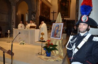 Si è tenuta questa mattina a San Ciriaco la santa messa per celebrare la Virgo Fidelis, protettrice dell’Arma dei carabinieri. Al termine della funzione religiosa, il generale Fernando Nazzaro ha commemorato la 78esima ricorrenza della Battaglia di Culquarber, la Giornata dell’Orfano e le finalità dell’ONAOMAC (Opera nazionale assistenza orfani militari arma carabinieri), ente che assiste i figli dei militari caduti in servizio.