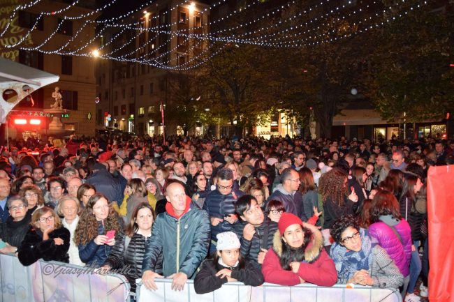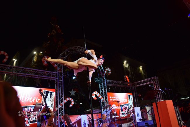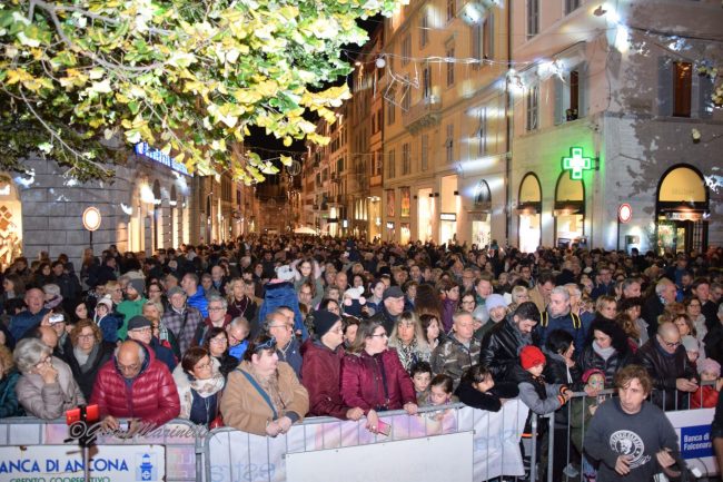 Sul palco, allestito per le manifestazioni che animeranno la città fino al 6 gennaio, i giornalisti Barbara Tomasino (Rai) e Maurizio Socci (Etv Marche) hanno presentato l’evento che ha dato il via al cartellone BiAnconatale. In migliaia si sono assiepati a perdita d’occhio lungo corso Garibaldi – si stimano circa 7-8mila persone –, arrivando anche con mezz’ora di anticipo per accaparrarsi i posti migliori. Prime file ai bambini, che hanno partecipato con entusiasmo all’atmosfera di festa. Si parte con la spettacolare performance di pole dance della campionessa italiana Laura Borgognoni, per poi arrivare fino all’esibizione della Jumpin’Jive Orchestra, che ha proposto un vasto repertorio dedicato al Natale. «Ogni anno giriamo il palco verso un lato diverso della piazza, ma l’affluenza è sempre la stessa – osserva ironica la sindaca Valeria Mancinelli, prima di premere il bottone per dare inizio alle danze –. ci aspettano 50 giorni durante i quali la città sarà in festa, un’occasione per avere un momento di serenità in più». Un messaggio rivolto non solo agli anconetani, ma anche a chi viene da fuori per respirare l’atmosfera natalizia dorica. «Il presidente di FederAlberghi – fa sapere la prima cittadina – mi ha detto che gli scorsi anni, in questo periodo, le strutture ricettive chiudevano perché erano vuote, mentre quest’anno si stanno riempiendo. Un operatore turistico di Jesi ha fatto dei pacchetti ad hoc per i mercatini di Ancona».