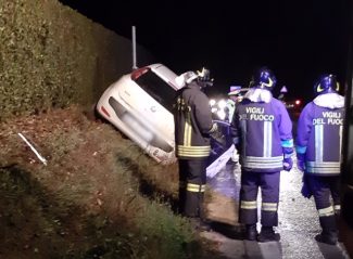 L’asfalto reso viscido dalla pioggia battente del pomeriggio si trasforma in una lastra su cui pattina e finisce fuori strada un’utilitaria. E’ successo poco fa, verso le 17,30 lungo via Roma, alle porte della città. Un giovane automobilista, un ventenne della zona, alla guida della sua Fiat Punto, ne ha perso improvvisamente il controllo mentre transitava in via Roma, nei pressi della rotatoria Pieralisi. L’auto, come una scheggia impazzita, è uscita di strada ed è finita sul fossato a lato della strada dopo aver abbattuto un cartellone pubblicitario. E’ rimasta di traverso, leggermente in bilico, sul fossato. Ferito, per fortuna in modo non grave, il conducente, che è stato soccorso dai sanitari dell’automedica del 118 e della Croce verde di Jesi, e trasportato al pronto soccorso dell’ospedale Carlo Urbani con un codice di bassa gravità. Sul posto sono anche intervenuti i Vigili del fuoco di Jesi, che hanno messo in sicurezza la vettura. L’automobilista ha fatto tutto da solo, perdendo il controllo della vettura, senza coinvolgere nel sinistro altri mezzi.