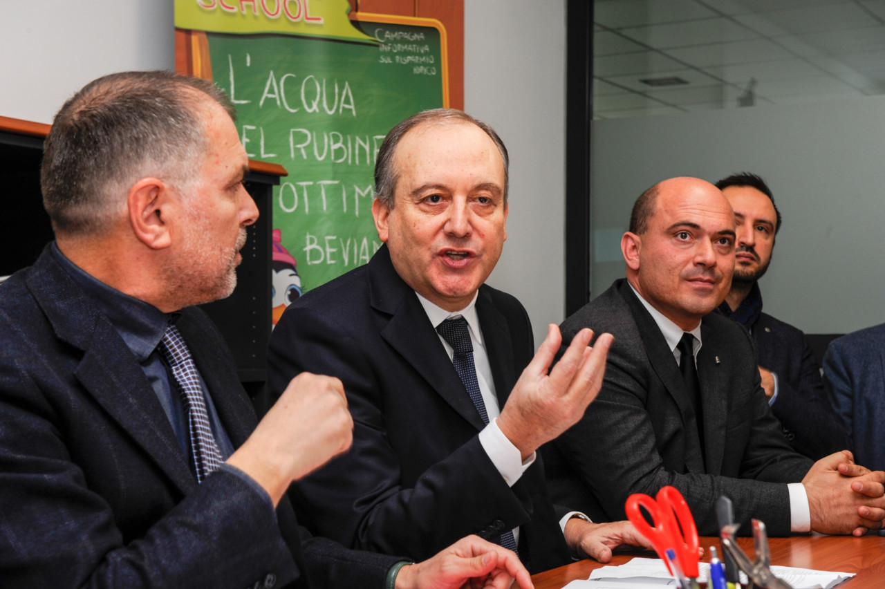 Il presidente dell’acquedotto sul Nera Marco Blunno, il presidente di Aato 3 Stefano Montemarani e il sindaco di Osimo Simone Pugnaloni