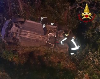 l’auto si ribalta, due feriti a Torrette
