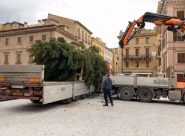 OSIMO – La consegna dell’albero nel primo pomeriggio di oggi, la cerimonia di accensione domenica prossima con il coro della Civica Scuola di Musica e lo spettacolo di pattinaggio sul ghiacco della Conero Roller – VIDEO