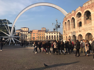 La storia intramontabile di Romeo e Giulietta, gli infiniti lucchetti dei tanti fidanzatini passati di là, le atmosfere natalizie e la bella e ricca città, non solo per storia e cultura. E poi il “Job&Orienta” la tre giorni dedicata ai ragazzi delle scuole, ma anche professori e non solo. Tra le 70mila presenze anche gli studenti dell’IIS Galilei di Jesi. Li citò Dante Alighieri e li riprese William Shakespeare. La storia dell’antica rivalità tra Montecchi e Capuleti e due amanti, Romeo e Giulietta, ambientata a Verona, li ha resi, nonostante la tragedia finale, immortali. Una storia che scorre ancora viva tra le caratteristiche vie di Verona e fa di essa una città piena di romanticismo con la statua di Giulietta, il balconcino e gli infiniti lucchetti appesi e conservati poco più in là. Le suggestioni del Natale fatto di atmosfere: la grande cometa di piazza Bra che abbraccia l’arena, gli alberi agghindati dalla Bauli come in piazza delle Erbe e poi il mercatino tipico tirolese e bavarese.