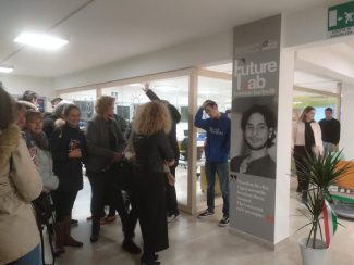 Carlo Antonelli, ingegnere progettista di Poliarte ha quindi spiegato le caratteristiche dei nuovi spazi e illustrato nel dettaglio le varie fasi dei lavori, dai primi modelli 3D fino alla posa in opera di tutti gli elementi che caratterizzano gli ambienti laboratoriali. Giovanni Re ha poi tenuto un’interessante presentazione sui nuovi artigiani digitali e i lavori del futuro resi possibili grazie alle nuove tecnologie. La progettazione del Future Lab si è avvalsa dei più recenti modelli proposti dalla ricerca scientifica ideati dal Mit di Boston con suggestioni dagli ambienti T.E.AL. (Technology Enhanced Active Learning), ad alto tasso di tecnologia che prevedono lavori di gruppo interattivi e uso di isole di lavoro con tavoli rotondi e tablet per ciascuno studente. La scelta è stata di riqualificare uno spazio inutilizzato, ampio foyer dell’Aula Magna del plesso di Via Marini 33, sfruttandone alcune caratteristiche rilevanti, come l’ampiezza e la presenza di una scalinata da utilizzare come nelle scuole del nord Europa per ricavare delle sedute che si affacciano su uno spazio di proiezione. L’idea è stata quella di proteggere gli ambienti di lavoro, ma con pareti trasparenti, dando modo a chiunque di ammirare gli ambienti, le tecnologie e le persone al lavoro all’interno, proprio come osservato negli avveniristici istituti di ricerca di Boston.