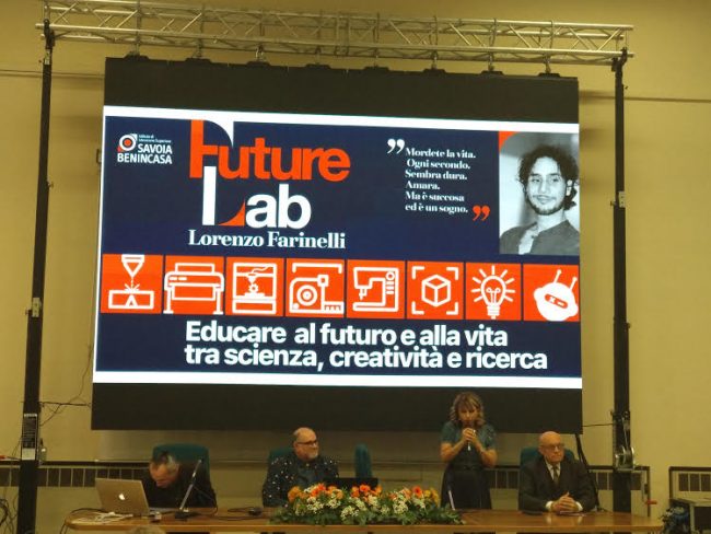 E’ stato inaugurato questo pomeriggio il Future Lab dell’IIS Savoia-Benincasa dedicato alla memoria di Lorenzo Farinelli, ex alunno prematuramente scomparso lo scorso febbraio. Il taglio del nastro è stato preceduto da un convegno al quale hanno preso parte la dirigente d’istituto Alessandra Rucci, l’assessora all’Istruzione del Comune di Ancona Tiziana Borini, il direttore dell’Accademia di Design Poliarte Giordano Pierlorenzi, il progettista Carlo Antonelli e Giovanni Re, community manager dell’azienda Roland, i docenti Frontoni e Scaladozzi della facoltà di Ingegneria dell’Università Politecnica delle Marche. Sono poi intervenuti i genitori di Lorenzo Farinelli e la compagna Martina con un ricordo commovente del giovane medico ex alunno dello scientifico Savoia. «In questa scuola Lorenzo ha condiviso momenti bellissimi e soprattutto i suoi sogni – ha detto la mamma Amalia Dusmet- mio figlio aveva tanti progetti e voleva tanto vivere, non siamo riusciti a portarlo in America per le cure ma abbiamo creato la Fondazione a lui intitolata per portare avanti la ricerca, grazie alla somma raccolta con le donazioni pervenute. Grazie a tutti».
