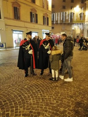 I Carabinieri della Compagnia di Jesi hanno celebrato l’Immacolata sfoggiando l’alta uniforme storica. Una pattuglia a piedi, composta da due militari, ha passeggiato oggi pomeriggio lungo corso Matteotti e in piazza della Repubblica, facendosi ammirare da famiglie e soprattutto da bambini che incuriositi, hanno voluto una foto accanto ai militari. Un gesto di affetto e stima, che lascia trasparire quanto sia forte il legame tra la cittadinanza e l’Arma dei Carabinieri. L’uniforme storica, bellissima e sontuosa, è una divisa che ha radici ottocentesche e riesce così a coniugare con raffinata eleganza la rappresentanza istituzionale al vero e proprio servizio di pattugliamento a piedi per le vie centrali della città, in una delle giornate clou delle festività pre-natalizie e dello shopping. Una presenza non sono bella da ammirare, ma anche funzionale a potenziare la prevenzione attraverso la visibilità e la prossimità al cittadino e alle attività commerciali che insistono in centro. Come disposto dal Comando Compagnia di Jesi, l’iniziativa si ripeterà anche il pomeriggio della vigilia e quello di Natale.