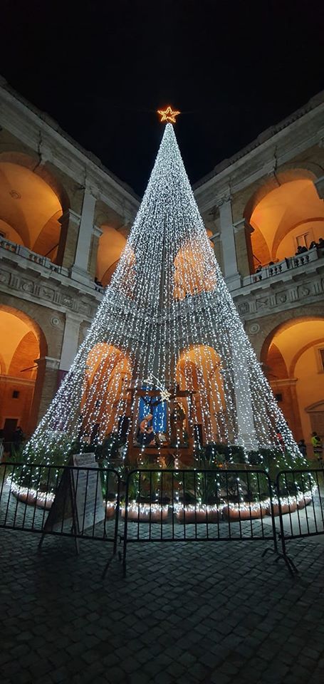 Il primo albero ad essere illuminato è stato quello tradizionale, in piazza Leopardi, l’abete, alto 13 metri, donato dal Comune di Andalo, con cui Loreto è gemellata da anni, posto nella parte civica della città. All’incontro erano presenti anche monsignor Fabio Dal Cin che ha benedetto l’albero, il sindaco di Loreto Paolo Niccoletti che ha spiegato che «ci piace pensare che proprio la Madonna Loreto abbia protetto gli amici e la città di Andalo durante la tempesta dell’anno precedente», e lo stesso sindaco di Andalo Alberto Perli, che ringraziato la città mariana per il sostegno dato in quella occasione cosi difficile. Quindi é stata la volta dell’albero espressamente dedicato all’Anno Giubilare, in piazza della Madonna, non una pianta reale ma una cascata di luci di alto valore tecnologico, un centinaio di filamenti illuminati che partono dalla punta dell’albero per scenderne ai piedi, andando a ricordare la forma di un abete. A questa cerimonia erano presenti anche la presidente della Fondazione Cassa di Risparmio di Loreto Fulvia Marchiani e il residente di Fondazione Opere Laiche Lauretane – Casa Hermes, Paolo Casali. Tra le due inaugurazioni ‘luminose’, la vista al Presepe di Caltagirone.