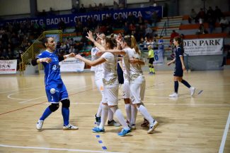 È festa al PalaBadiali per la quarta vittoria consecutiva del Città di Falconara. Storico filotto: è la prima volta per le azzurre da quanto esiste la Serie A a girone unico. Il risultato finale premia una gara attenta e ben condotta dalle ragazze di Neri contro un Real Grisignano comunque sempre pericoloso ma fermato da una Dibiase in giornata. Pato è ispirata e già dopo 24 secondi, sfruttando il pressing alto della squadra, riesce a liberarsi da ottima posizione ma il suo tiro sfila sul palo. Proprio la numero 99 che apre la marcature con un facile tap in sottomisura al termine di una triangolazione tutta di prima con Nona. Particolarmente ispirata, la spagnola che al 6’ semina il panico in area avversaria, dribbla Famà ma è murata dalla difesa. Ancora Grisignano alla caccia del pareggio con Troiano dalla distanza, Dibiase devia in tuffo. Sempre Dibiase in uscita frena l’incursione di Troiano. I piedi di Nona illuminano il PalaBadiali anche all’8’: la triangolazione con Vieira è perfetta, il tocco sottoporta è freddo e non lascia scampo a Famà. Le ospiti venete crescono nel finale. Turetta ha un paio di occasioni buone per accorciare le distanze ma Dibiase è in vena di miracoli. E quando rischia qualcosa in più è la difesa a fare la differenza: come sull’incursione di Troiano con palla in mezzo verso Ziero in ottima posizione, capitano Luciani anticipa all’ultimo e sventa il pericolo. Le venete chiudono in avanti ma sono le padrone di casa ad avere l’occasione più ghiotta con le incontenibili Nona e Pato. La conclusione di quest’ultima fermata dal palo. Nella ripresa sono sempre le falchette a tenere il pallino. Pato in contropiede fa tutto bene, Famà riesce a metterci una pezza. Non passa un minuto che Nona va in solitaria sulla sinistra, lascia sul posto due avversarie e serve Pascual appostata sul secondo palo per il gol del 3-0. Ma il Grisignano non demorde, pressa e cerca in tutti i modi la via del gol. Ci provano Privitera e Turetta, nulla da fare. Falconara non sta a guardare. Vieira con una puntata testa i riflessi di Famà e poi Ferrara si vede annullare il gol per presunto fallo di mano di Pereira. La Pupilla si rifà qualche minuto dopo con una bella e insistita azione che fa arrivare la palla tra i piedi di Guti: tiro al veleno e palla in rete. Sul 4-0 le Citizens controllano senza rischiare più di tanto nonostante la pressione delle venete si faccia sentire. Gli spazi si allargano con il passare dei minuti e così, a Pato che in diagonale costringe Famà al corner, risponde subito Privitera che pesca Pinto Dias in area pronta a battere Dibiase. Combattivo, il Grisignano. Pinto Dias in diagonale sfiora la marcatura ma a spegnere gli entusiasmi delle ospiti ci pensa la solita Pato: un suo missile dalla distanza si stampa sul palo e la ribattuta è compito, portato a termine al meglio, di Isa Pereira. Chiude il cartellino dei marcatori ancora Pinto Dias che raccoglie la ribattuta di Dibiase sul suo stesso tiro e fissa lo score sul 5-2. Sarà un fine 2019 davvero intenso quello delle Citizens. Domenica prossima si va a Firenze per l’11esima di campionato poi, mercoledì 18 e domenica 22, doppio impegno al PalaBadiali rispettivamente per il terzo turno di Coppa della Divisione (avversario il Cagliari) e contro il Real Statte per l’ultima gara del girone di andata.
