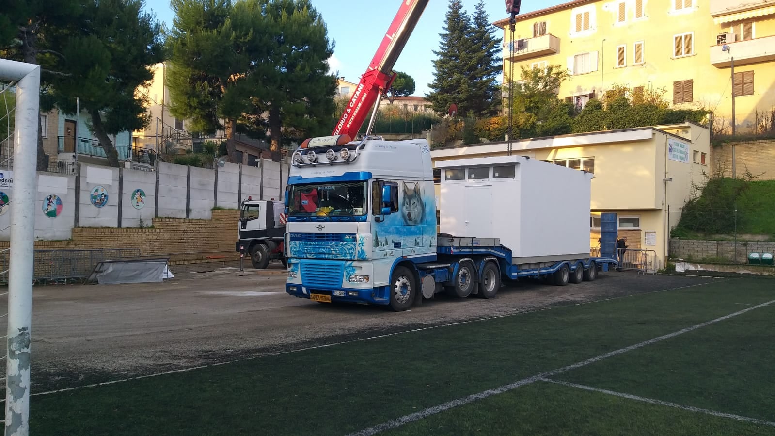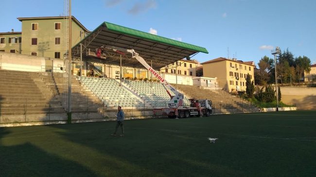Sono iniziati i lavori al campo sportivo Leoncavallo di Castelfidardo che prevedono 2 nuovi spogliatoi, sistemazione dei vecchi e rete protettiva per la copertura delle tribune. «La nuova struttura, realizzata dalla Emme cinque di Cerreto d’Esi, prevede 2 spogliatoi dotati di docce e bagno per disabili.- spiega il sindaco Roberto Ascani – Andiamo così a risolvere una carenza di spazi, in particolare per i più giovani, sia durante gli allenamenti che durante le partite dove ospitiamo le squadre di calcio dei paesi limitrofi. Sui vecchi spogliatoi andiamo a sostituire gli infissi e gli impianti doccia. La rete invece consentirà di eliminare il problema dei piccioni che vanno a stanziare sulla copertura delle tribune». Il primo cittadino di Castelfidardo fa sapere inoltre che «entro questo mese si effettuerà anche un sopralluogo con il tecnico Figc che consenta di quantificare in maniera più precisa i lavori di sostituzione manto sintetico».
