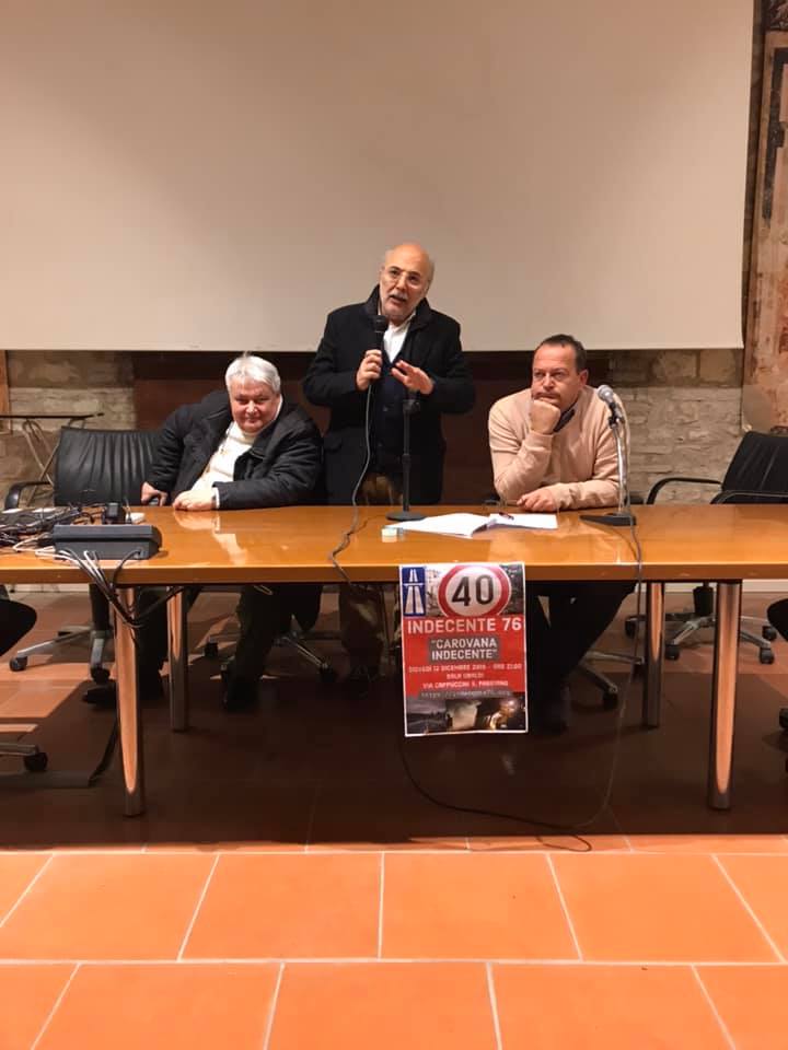 ‘Carovana indecente’, è stato fissato per venerdì prossimo, 20 dicembre, l’appuntamento con il serpentone di auto a passo d’uomo sulla Ss 76, da Albacina fino a Serra S. Quirico e ritorno. E sarà soltanto la prima delle manifestazioni di protesta annunciate dal comitato ‘Indecente 76’ che da tempo si batte per il completamento dei cantieri che punteggiano la viabilità del territorio montano. Circa 80 persone hanno preso parte ieri sera, 12 dicembre, all’Assemblea pubblica organizzata dal comitato di cittadini “Indecente 76” svolta nella Sala “Ubaldi” a Fabriano. Nella sua introduzione, il presidente del comitato, Paolo Paladini, dopo aver ricordato le principali attività del comitato a poco più di un anno dalla nascita (le assemblee pubbliche con le attività produttive e le parti sociali, gli incontri con i Sindaci del territorio, il servizio televisivo di “Striscia la notizia” visto da milioni di persone, l’esposto sulla sicurezza inviato alle Procure della Repubblica di Ancona, Perugia e Roma,, ha lanciato la proposta di una “Carovana indecente” per rallentare il traffico, nel tratto più critico tra Albacina e Serra S.Quirico, da effettuarsi in un giorno feriale prima dell’inizio delle festività natalizie.