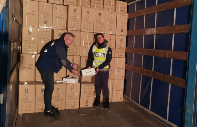 ANCONA - Operazione di Guardia di finanza e Agenzia delle dogane, gli autoarticolati arrivavano dalla Grecia ed erano pieni di capi d'abbigliamento, accessori e scarpe realizzati in Oriente senza requisiti di sicurezza
