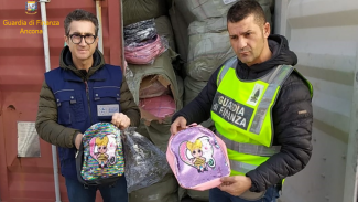 Maxi retata al porto di Ancona: sequestrati oltre 185mila pezzi tra articoli di abbigliamento, scarpe e accessori. Due le operazioni messe in campo dalla Guardia di finanza e dall’Agenzia delle Dogane. Più di 155.000 tra articoli di abbigliamento e accessori sequestrati, quasi 16.000 paia di scarpe da donna e circa 15.000 zainetti per bambini raffiguranti la bambola “L.O.L. Surprise”.
